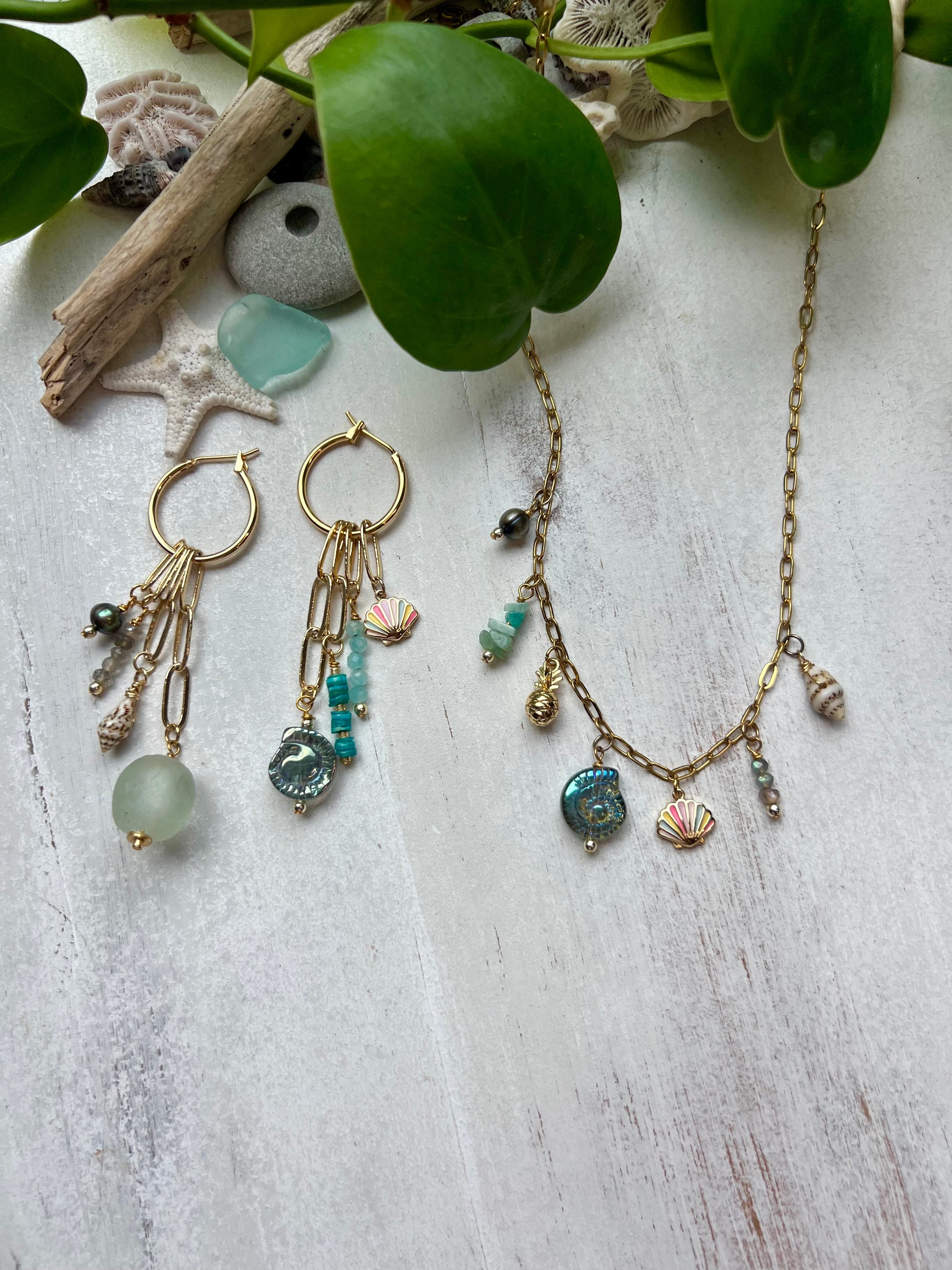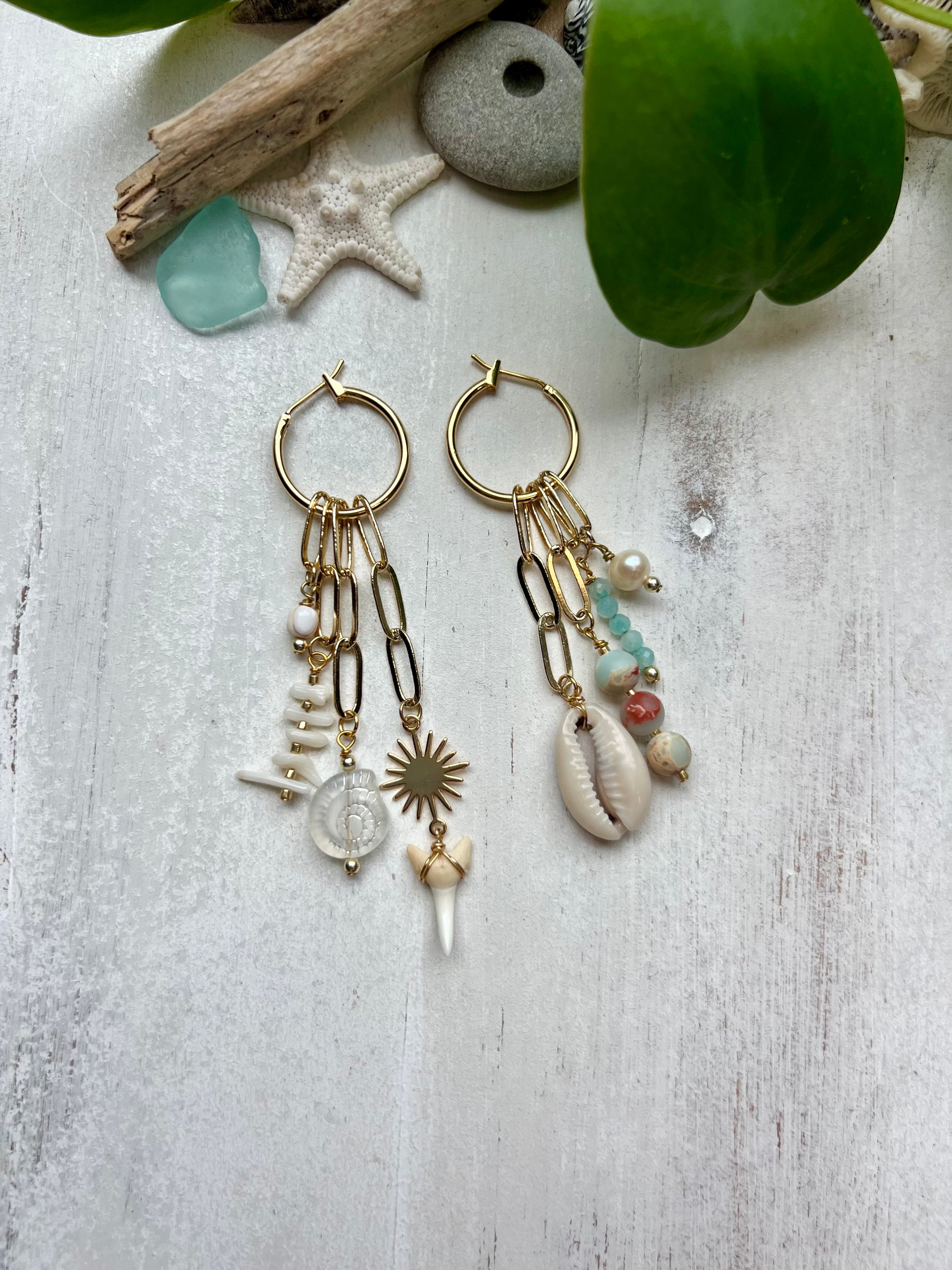 Upgrade your charm collection with endless possibilities! Choose from shells, gemstones, and pearls to personalize your look. Perfect for summer, beachy, and tropical vibes. Let your imagination run wild with our Build Your Own Charm Earrings. Hoops are NOT included in this listing.