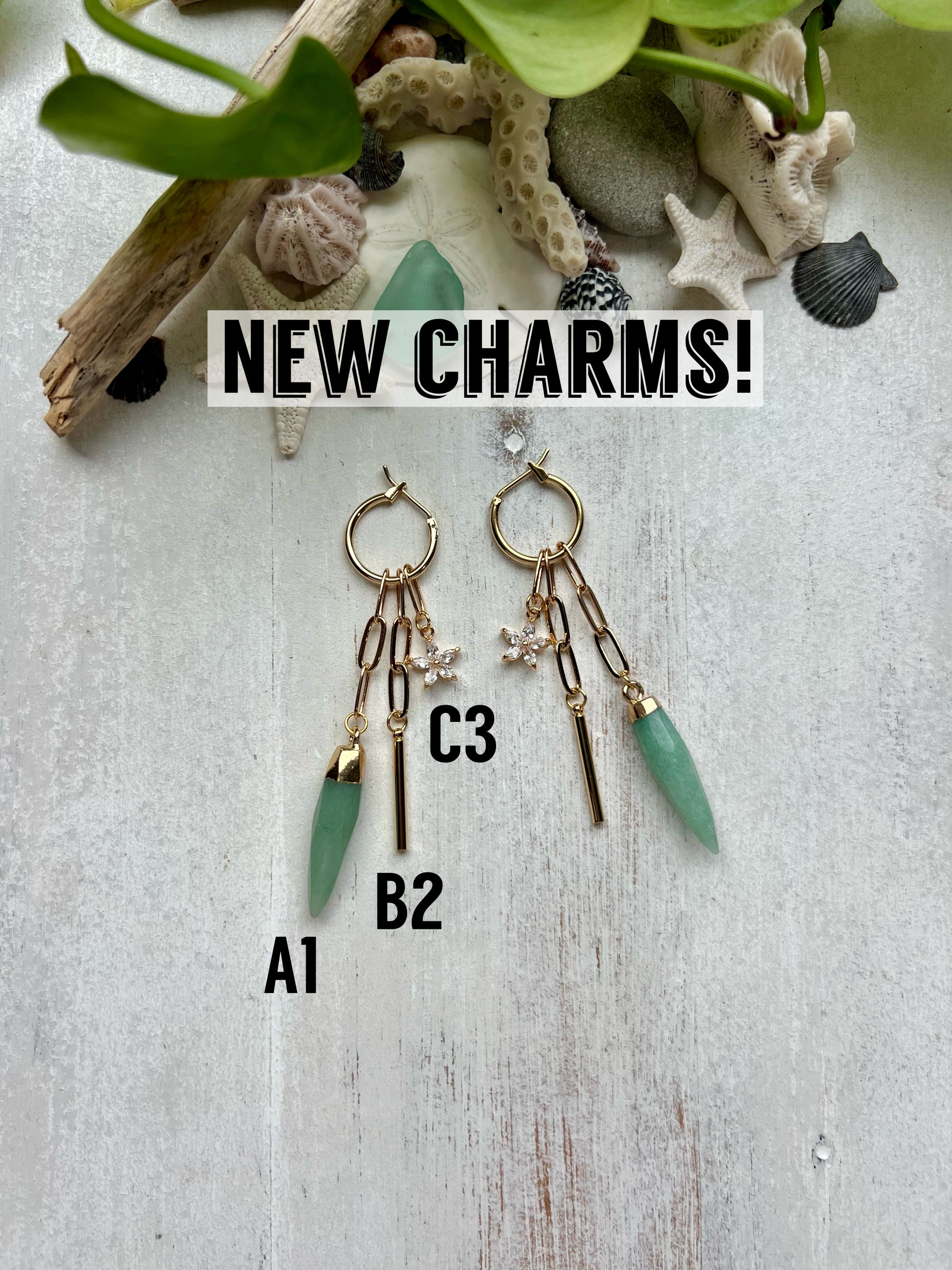 - Charms are sold INDIVIDUALLY. Choose how many charms you would like from the first drop down menu. (Hoops are sold separately- if you want to purchase hoops see this listing.