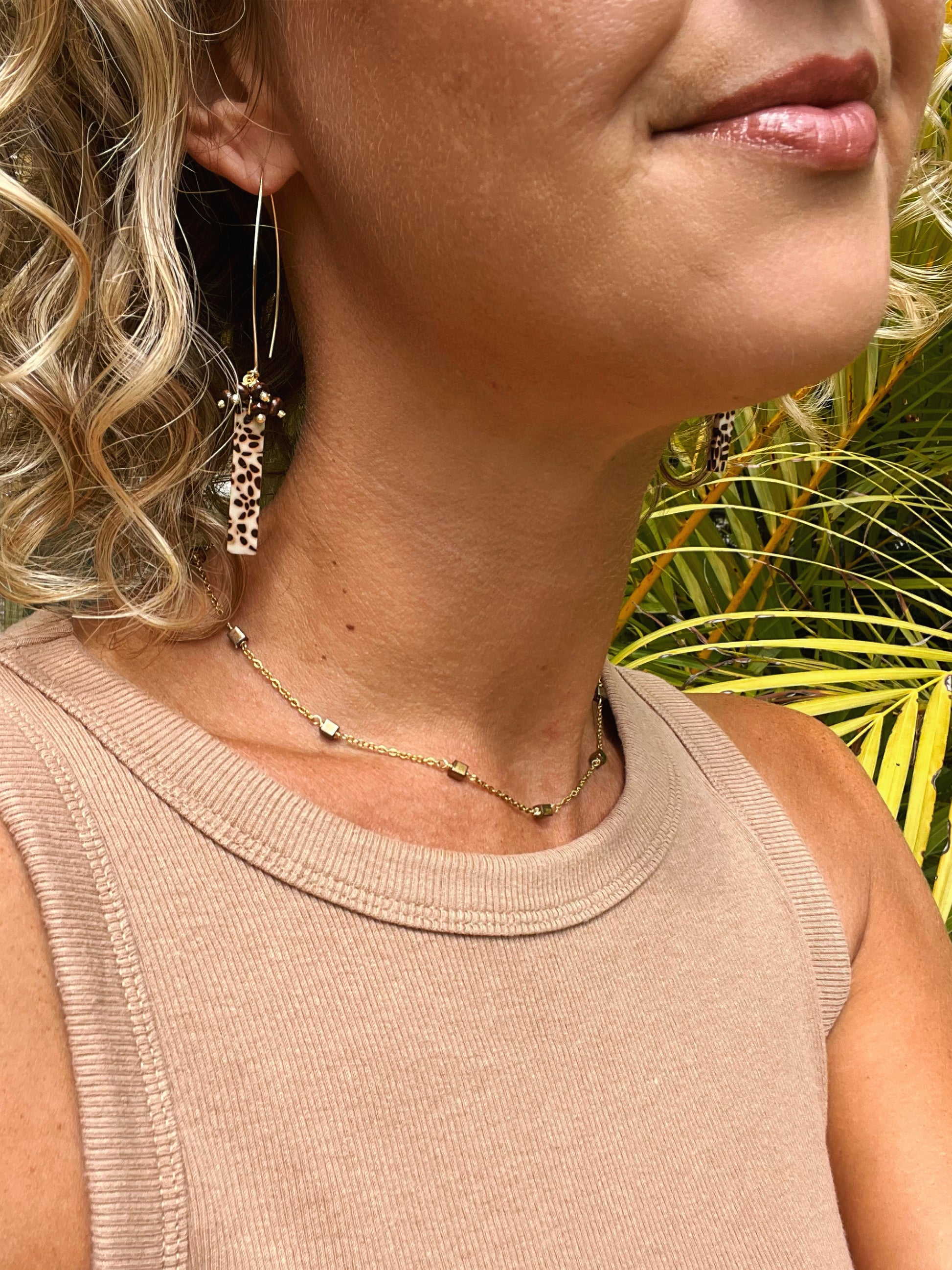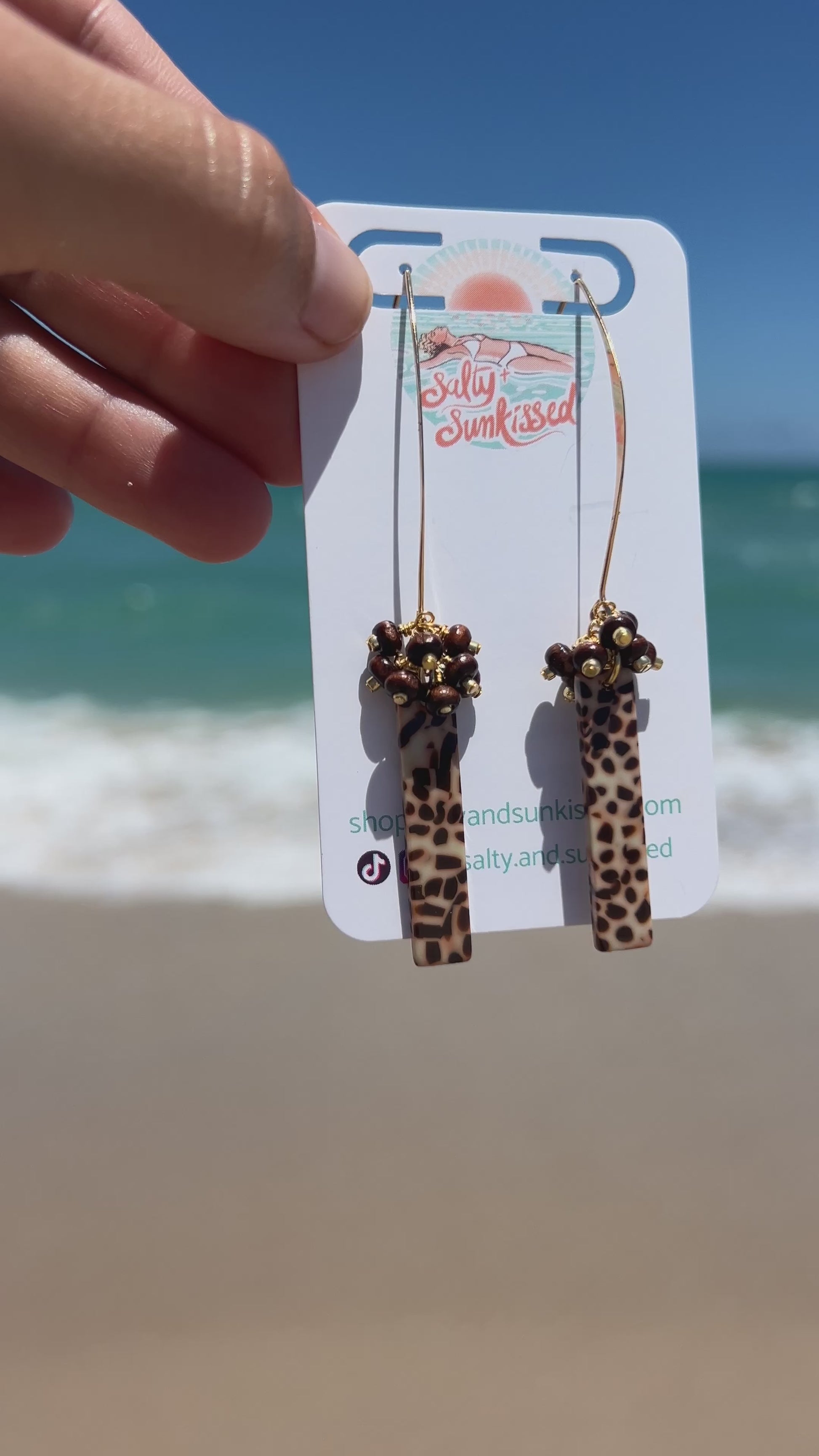 Unleash your wild side with our Cheetah Print Drop Earrings! Featuring stylish acrylic rectangles adorned with a cluster of wooden beads, these earrings offer a touch of boho charm to any outfit. Available in gold or silver accents, they're perfect for adding a trendy, tropical twist to your look. They are very lightweight and can be worn comfortably all day.