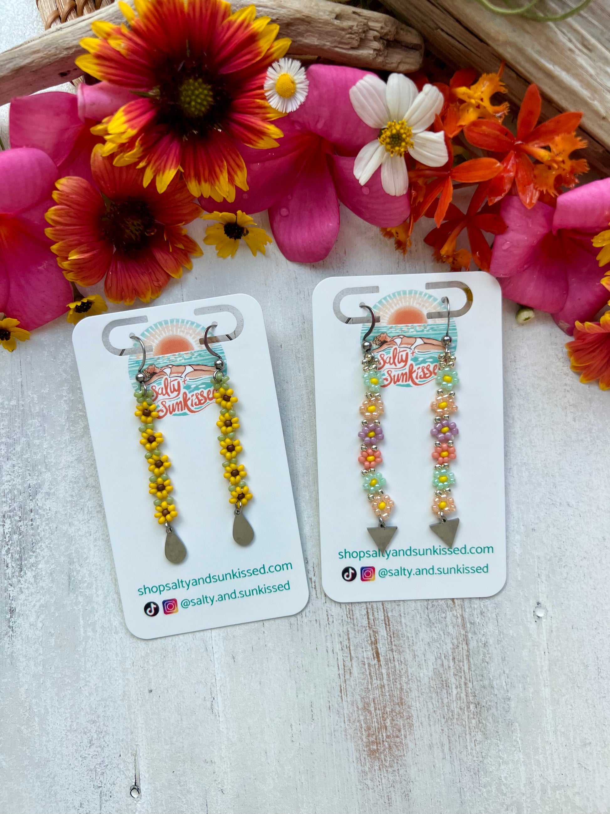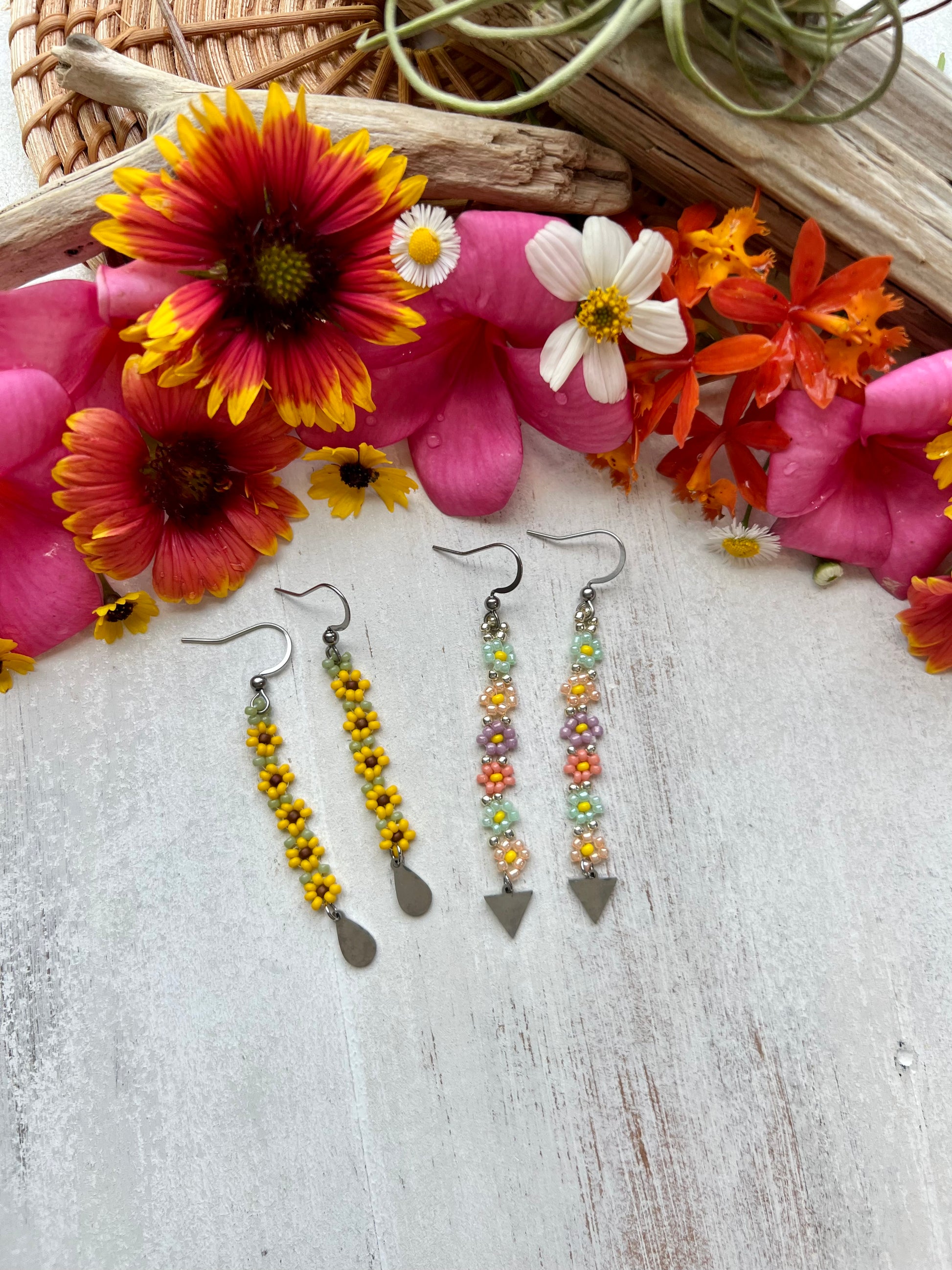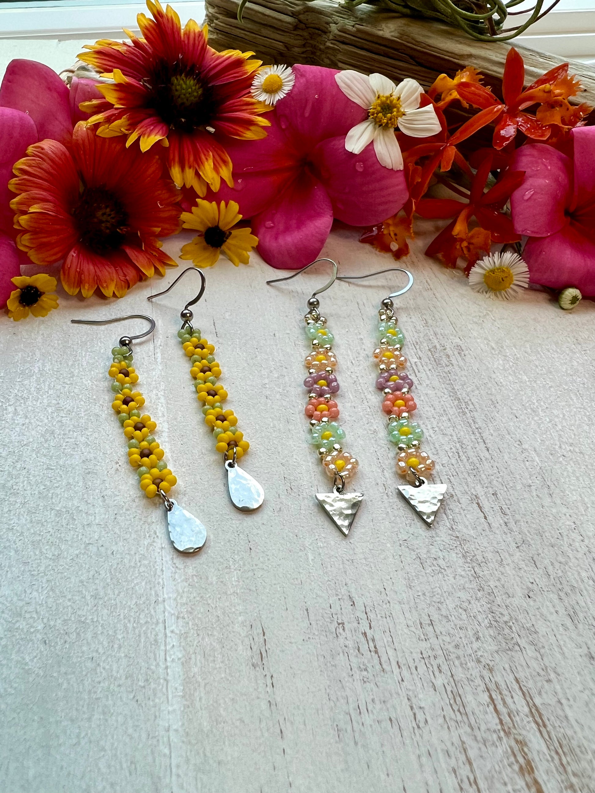~ Length of earring will depend on which style you choose and how many daisies you would like. Please see photos for details.