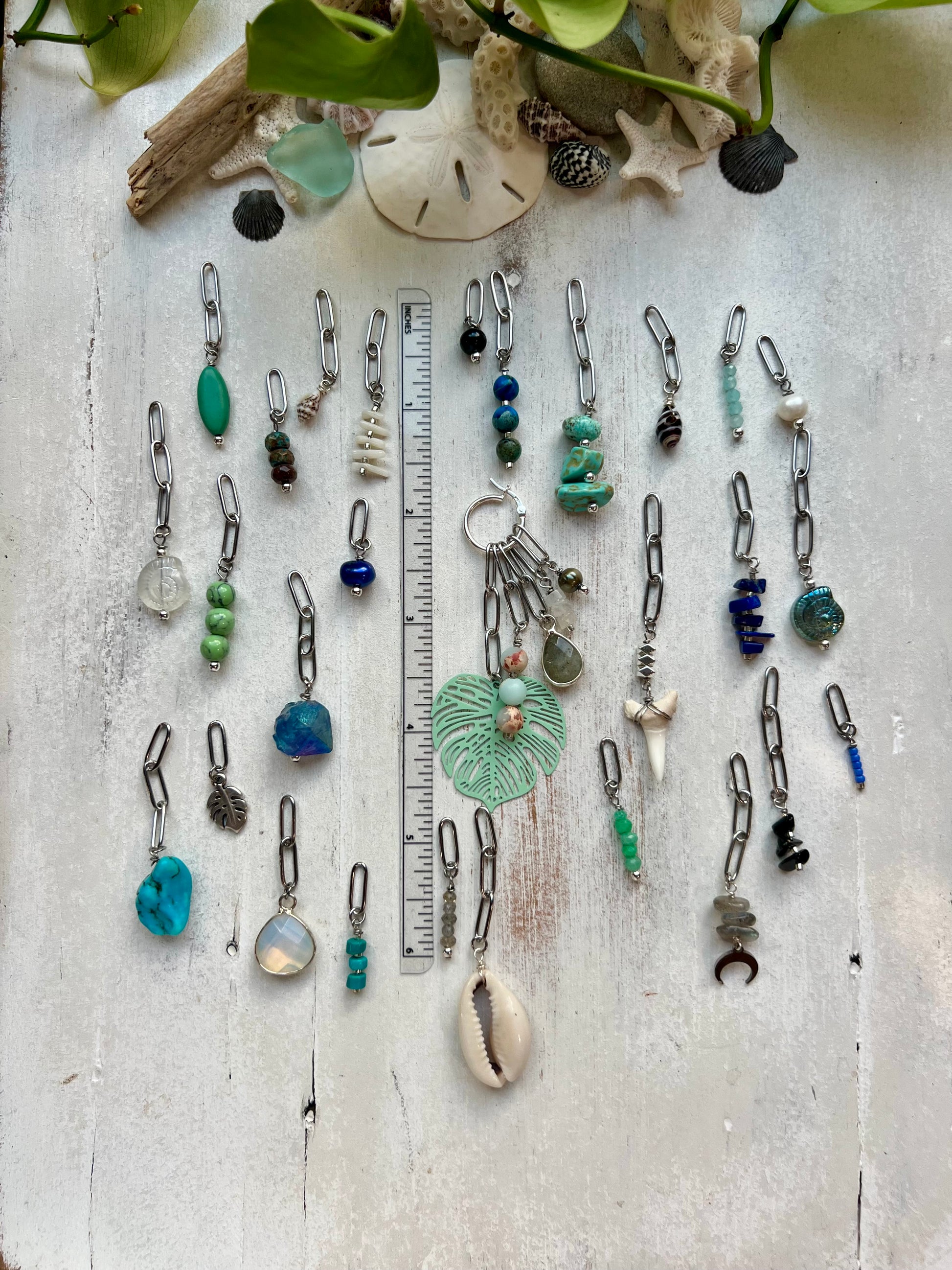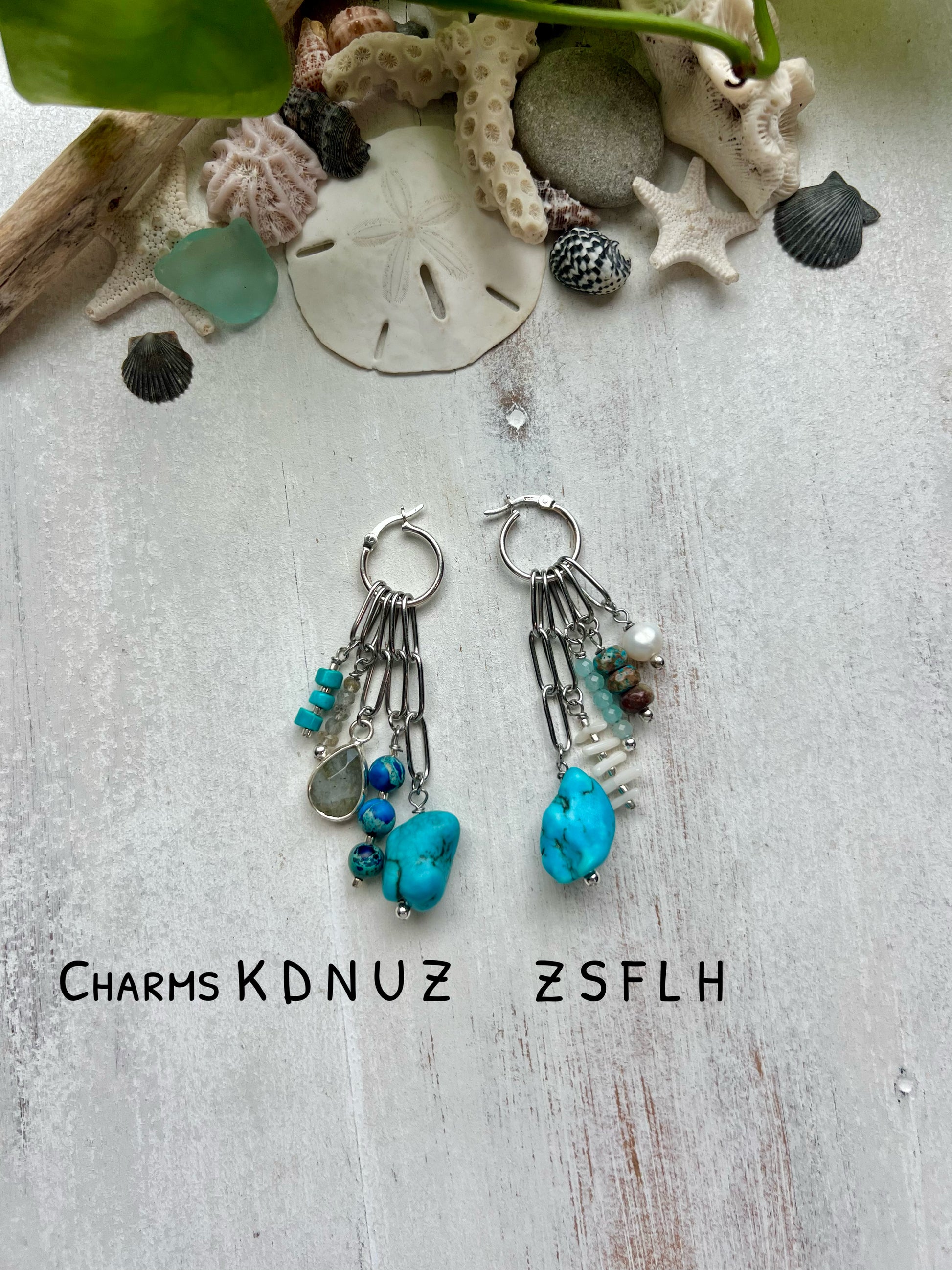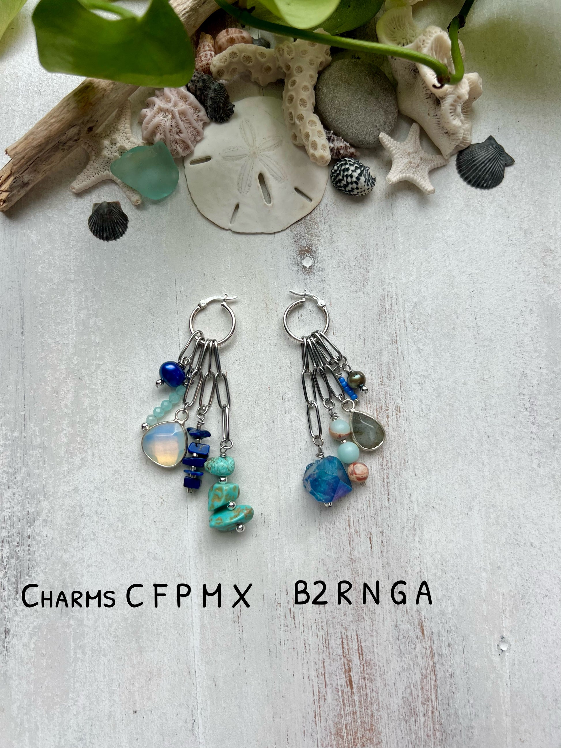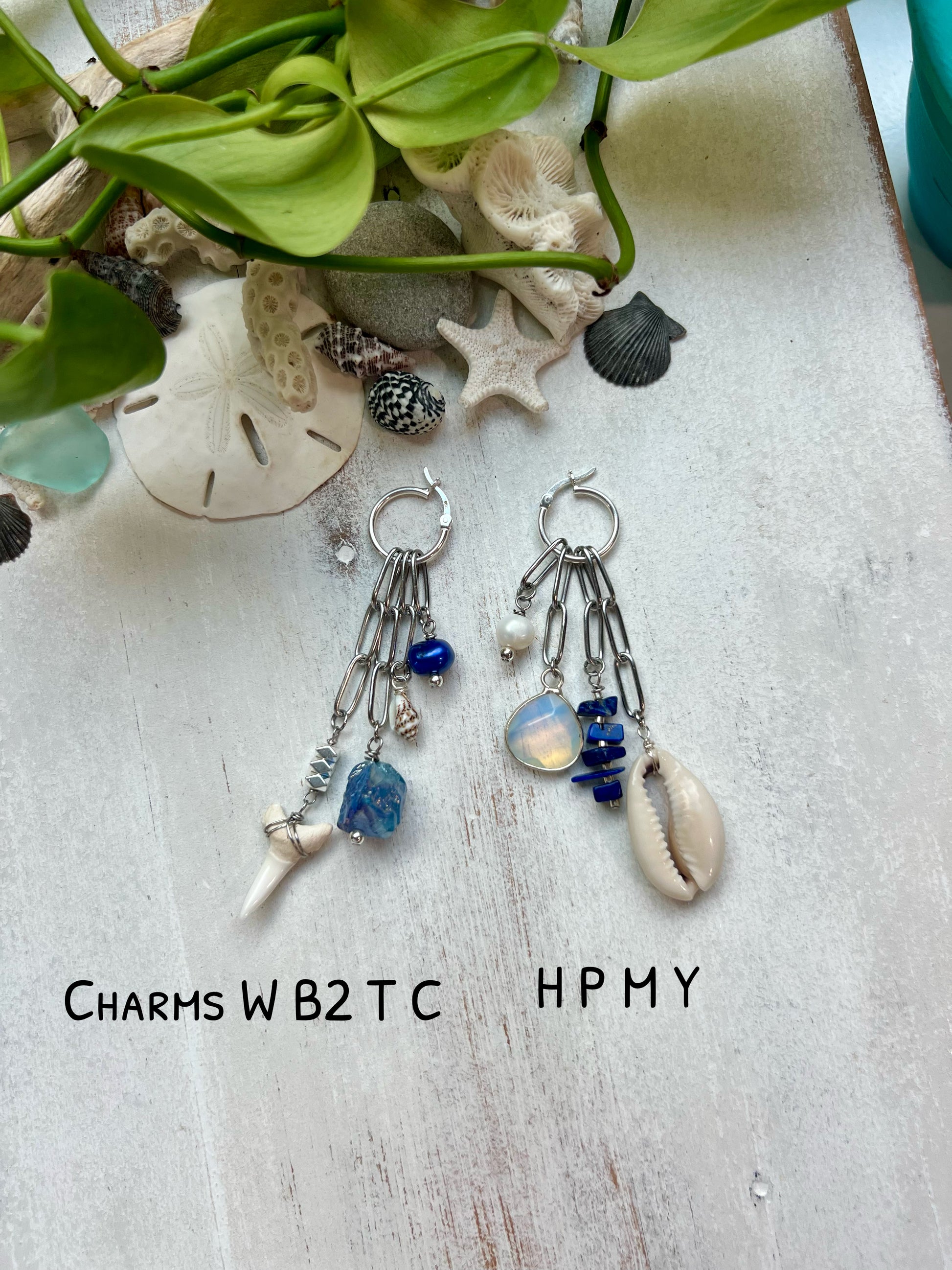 Experience the endless possibilities with our Charm Hoop Earrings! These huggie hoops come with interchangeable charms, allowing you to mix and match to express your unique style and creativity. Choose from a variety of shells, gemstones, pearls, and more to create your perfect summer, beachy, tropical look. Let your imagination run wild with our Build Your Own Charm Earrings.