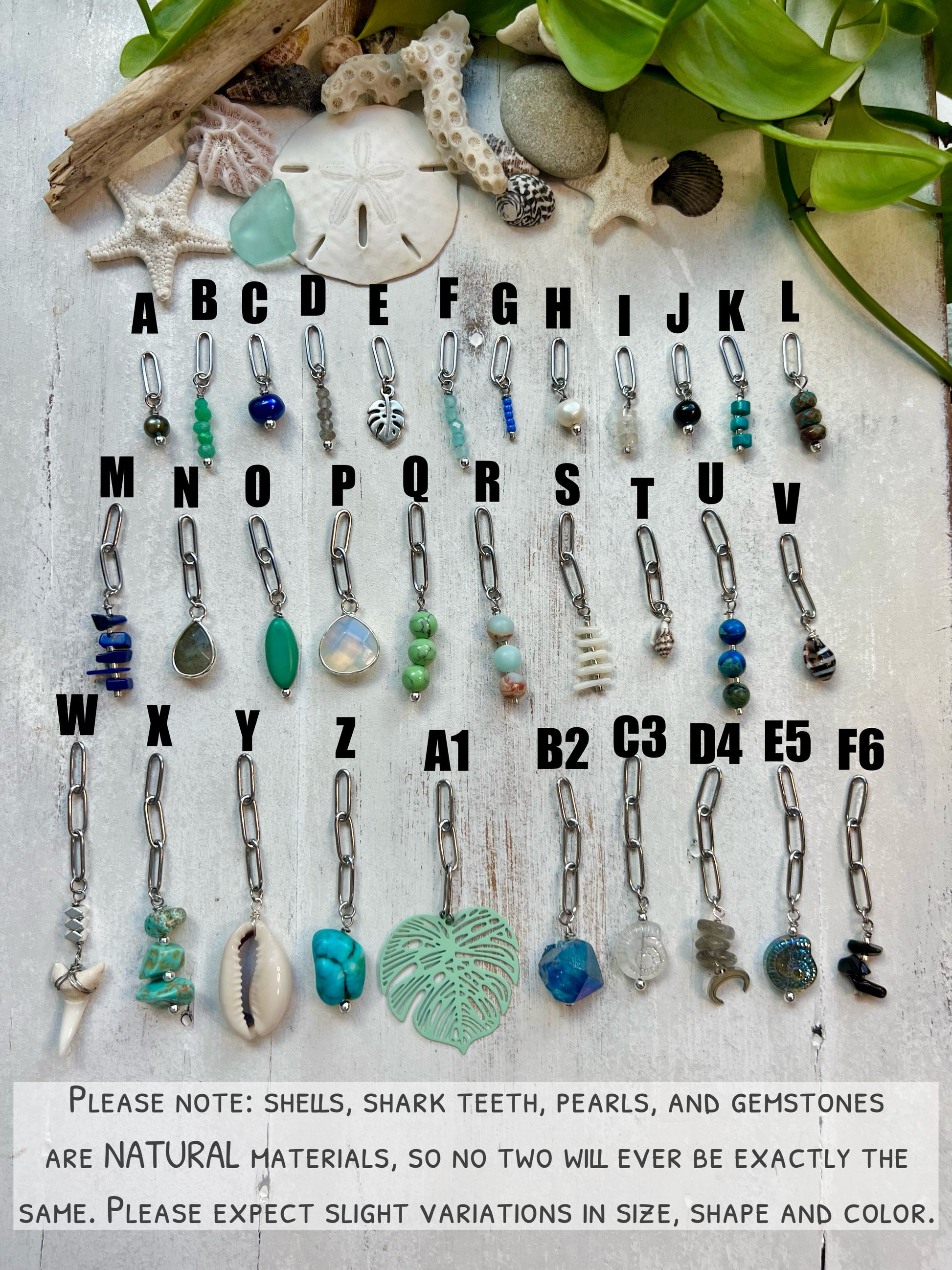 * Shells, Shark Teeth, pearls, and gemstones are made from natural materials, so no two will ever be exactly the same. Please expect slight variations in size, shape and color.