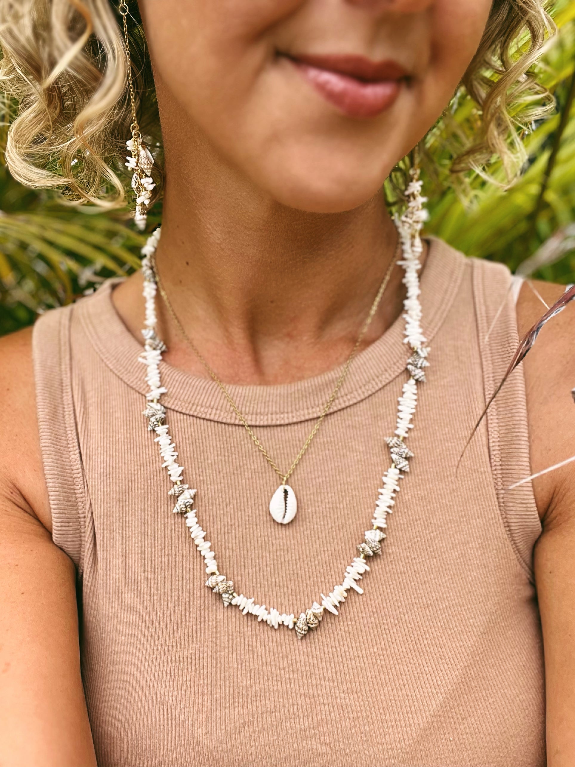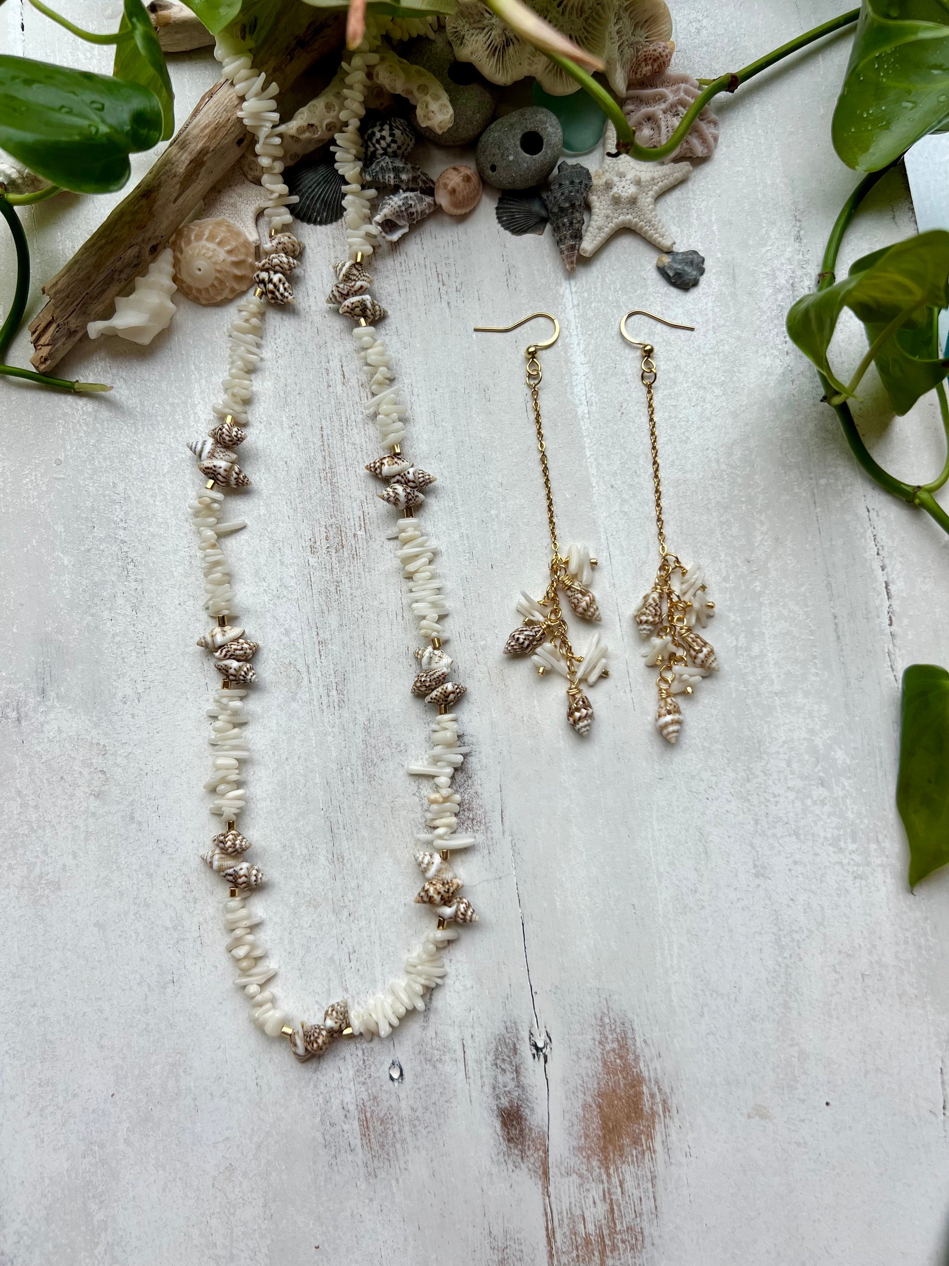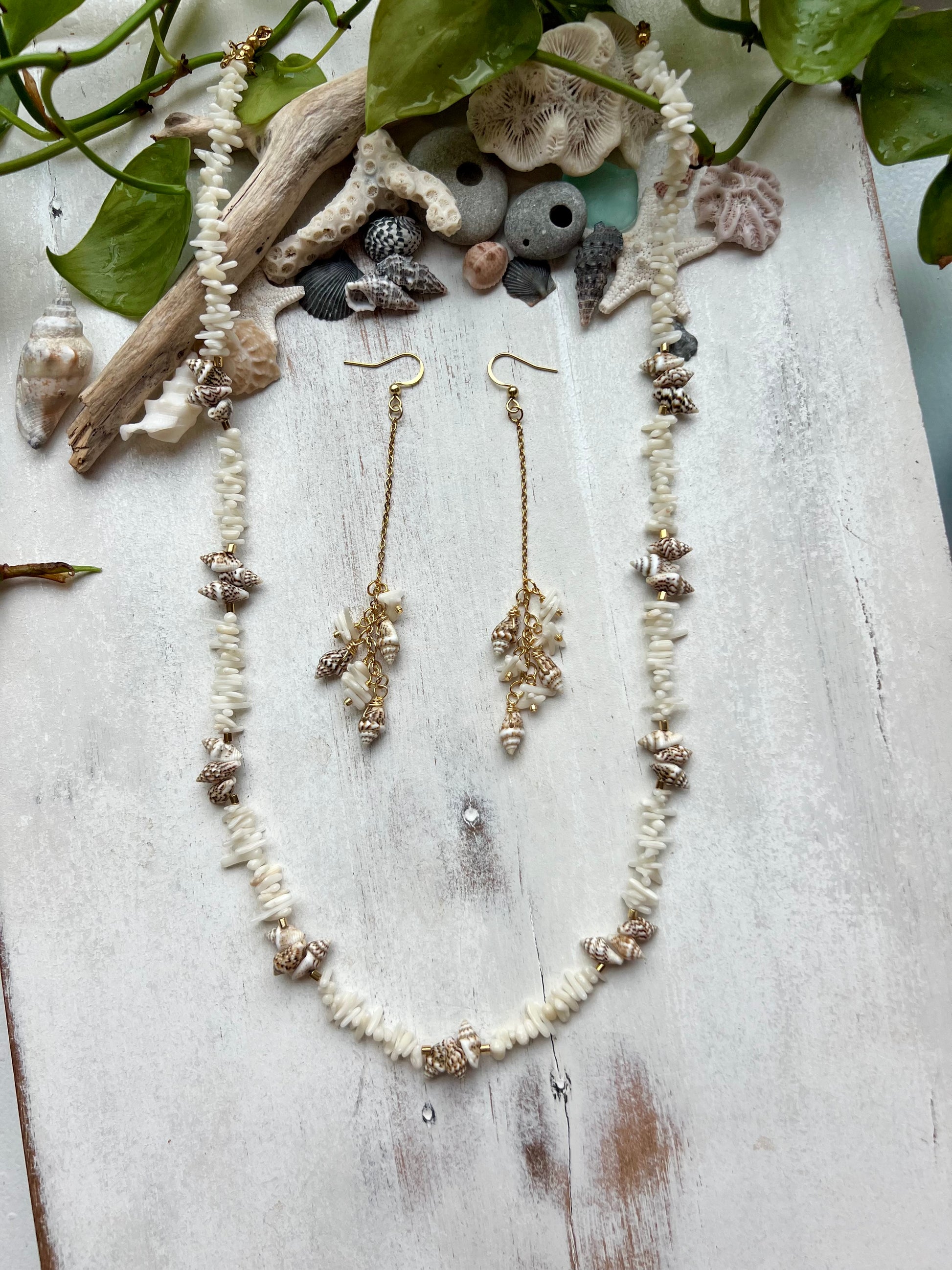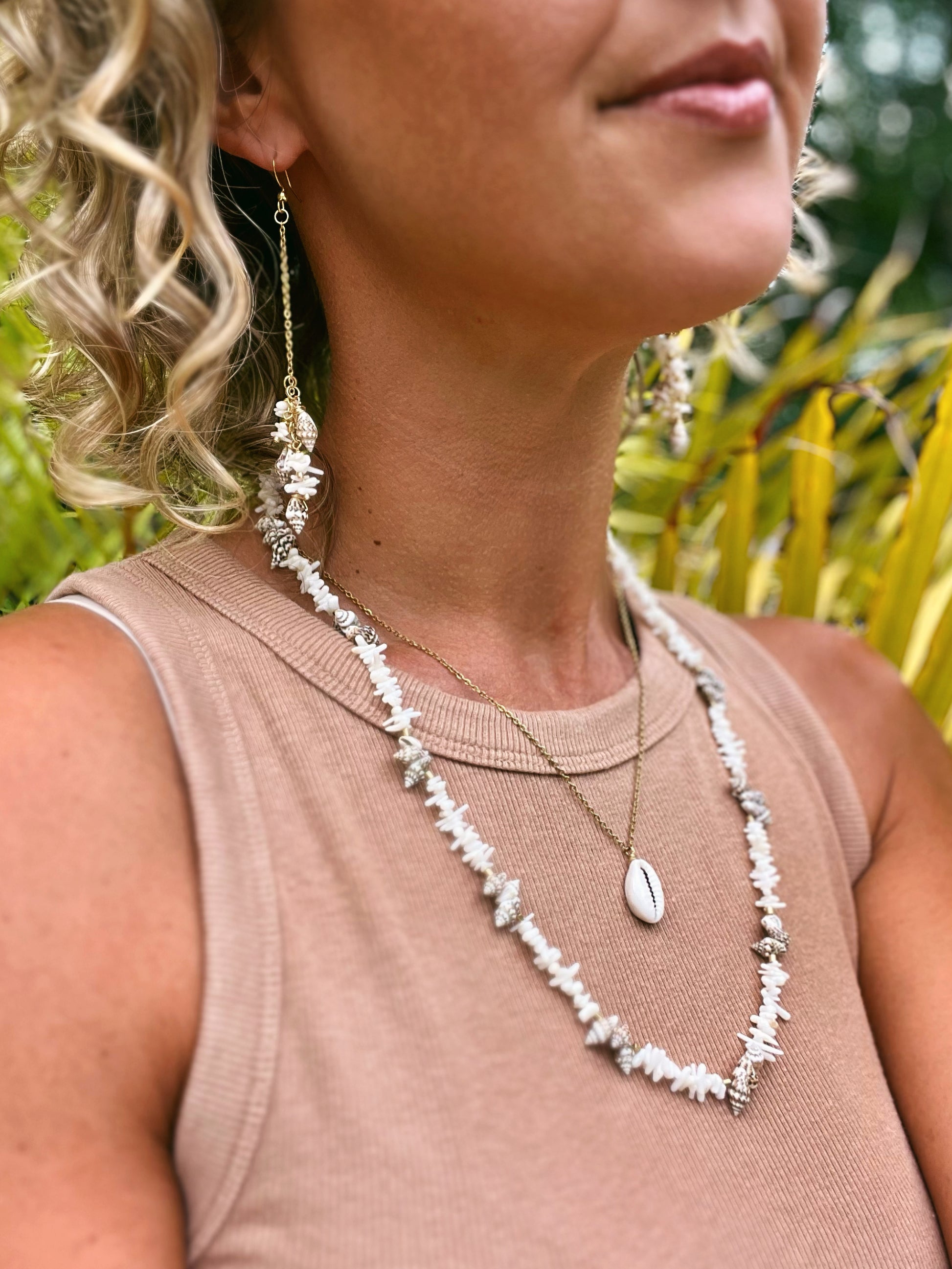 Get ready to channel your inner mermaid with our Long Tiger Shell Earrings! These boho earrings feature tiger shells and coral chips wire wrapped and hung from your choice of chain. Choose your desired length for the perfect beachy, summer accessory. Perfect for adding a touch of tropical flair to any outfit.