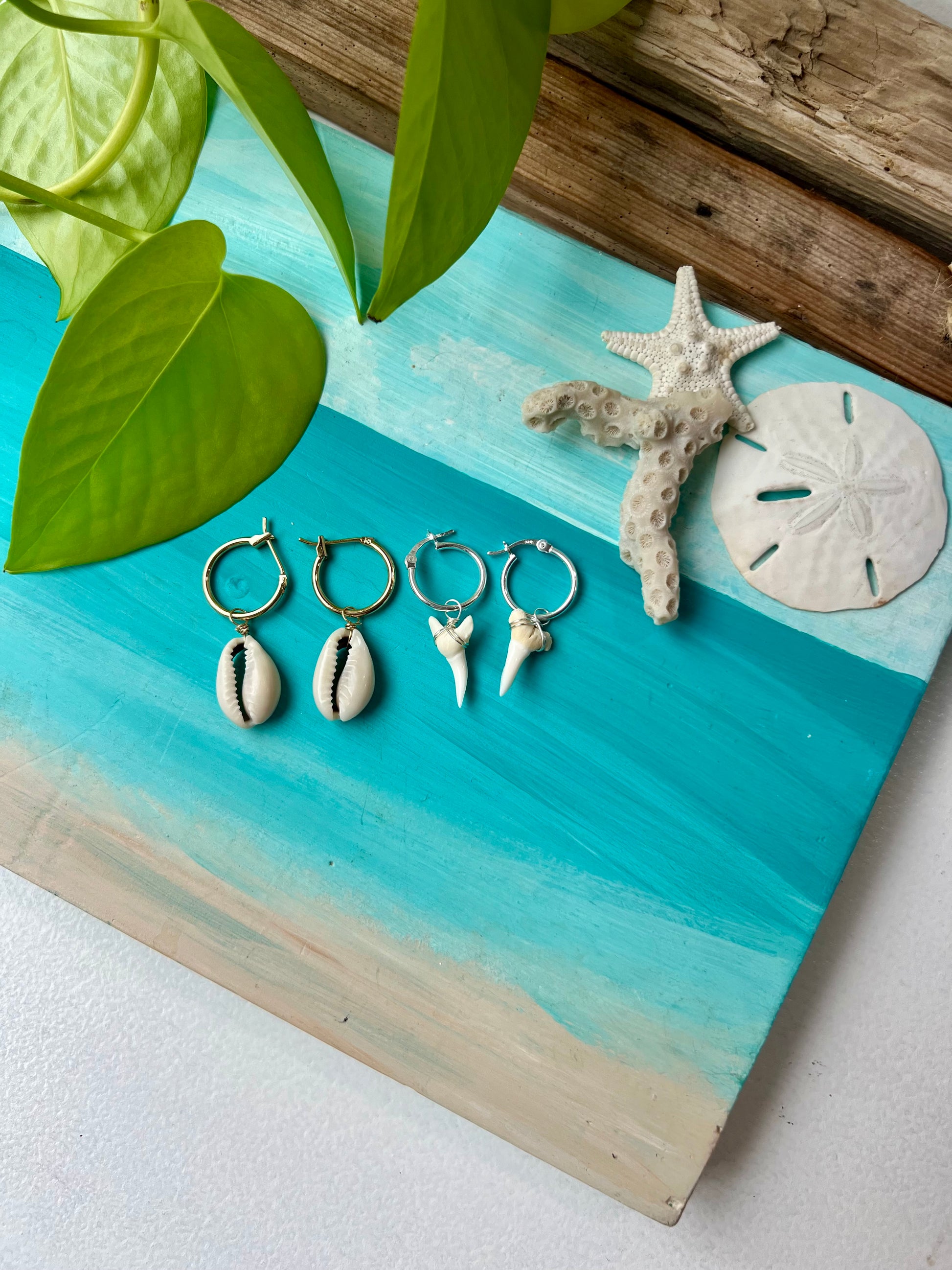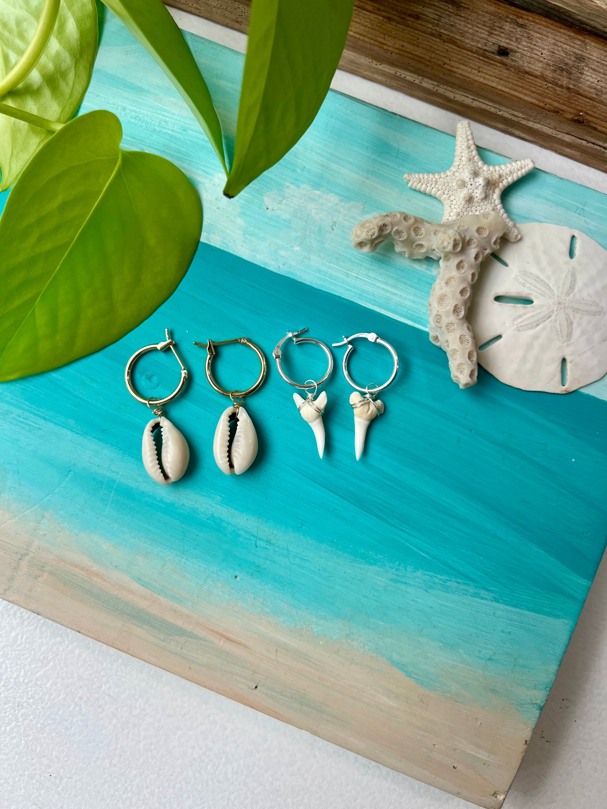 Shark Tooth or Cowrie Shell Huggie Hoop Earrings