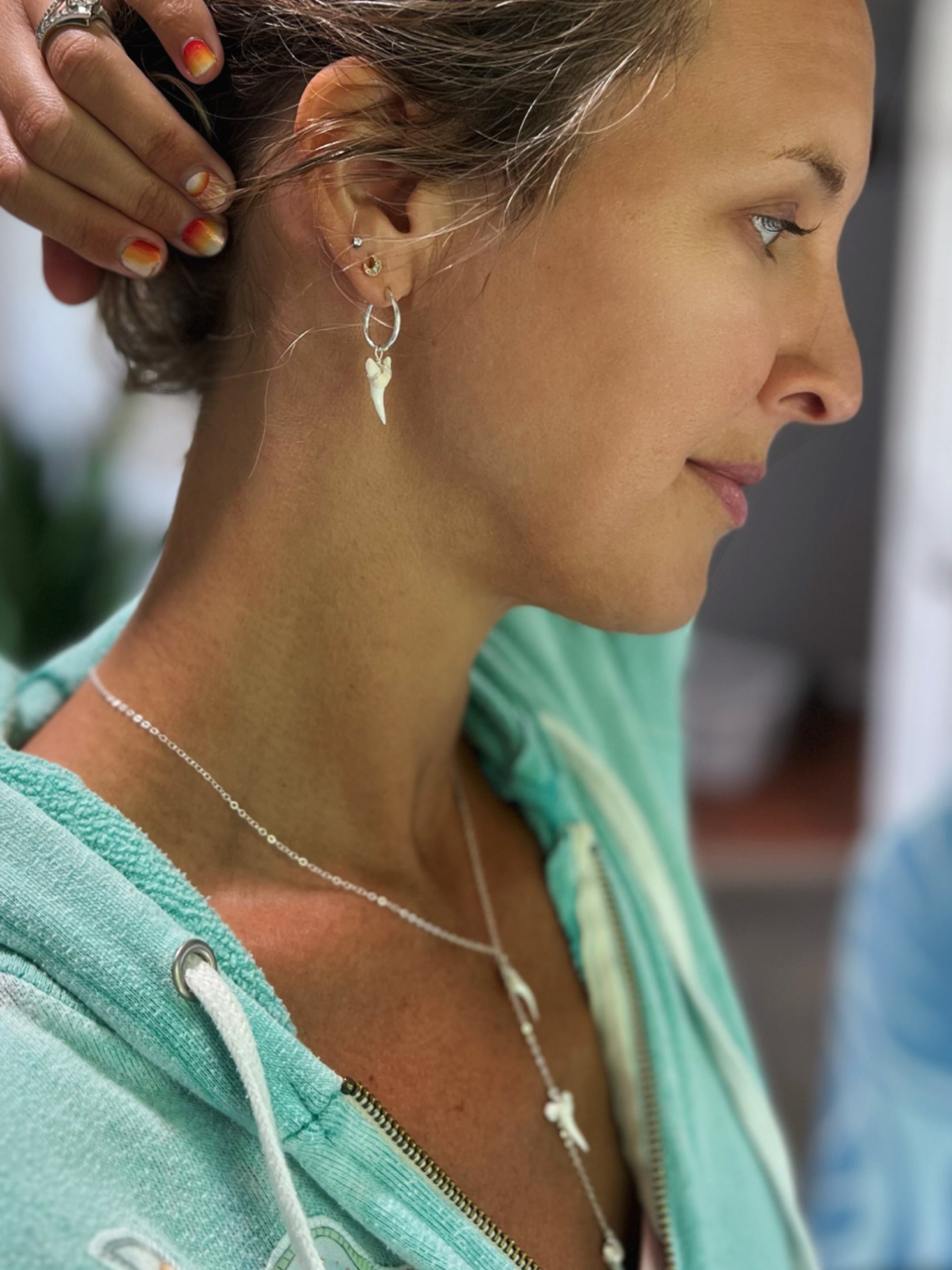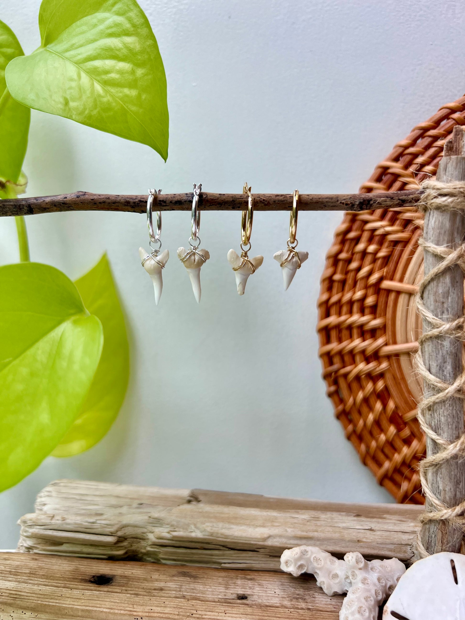 *Choose from 18K Gold Plated Brass or Sterling Silver hoops. Shells and Shark teeth are wire wrapped with either 14K gold filled or Sterling silver wire.