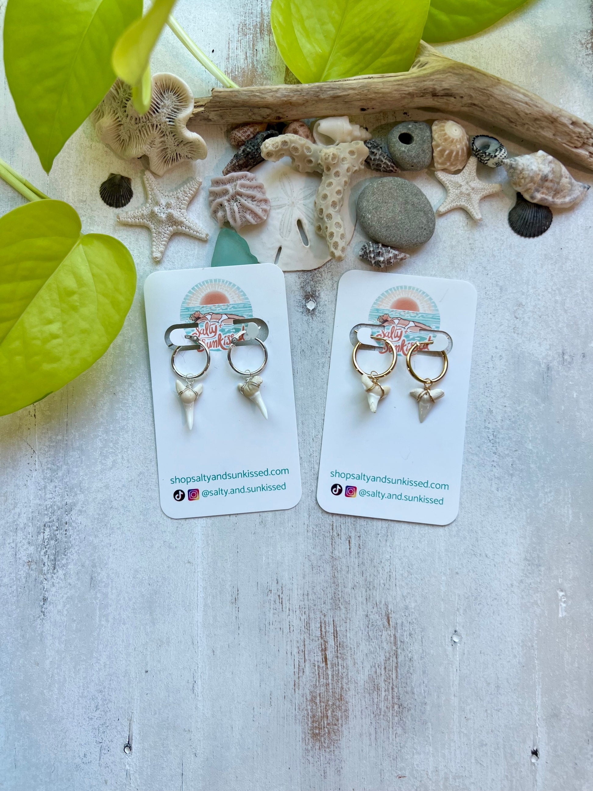 Feel the summer vibes with our Huggie Hoop Earrings! Made with genuine shark teeth, or cowrie shells, these earrings are perfect for beachy, tropical, and ocean lovers. Be inspired by the beauty of nature and channel your inner mermaid with these lightweight and fun earrings!