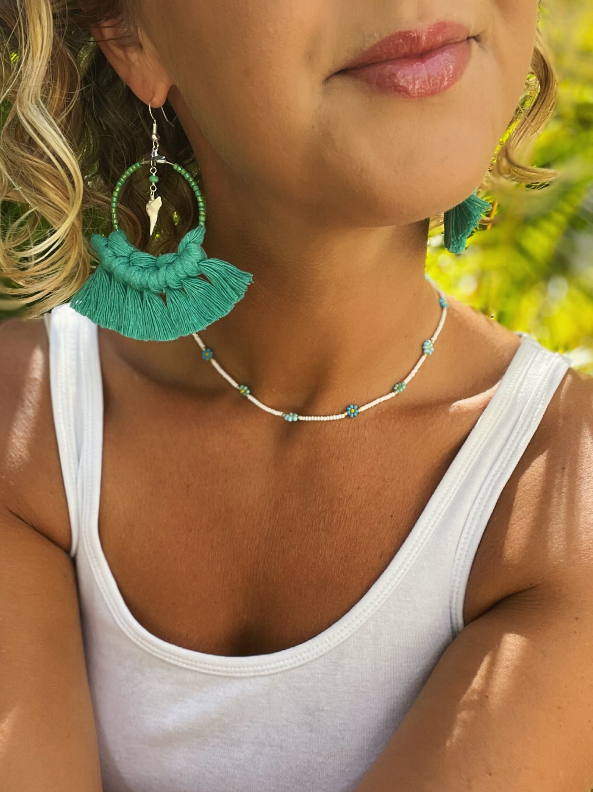 These summery beaded choker necklaces are hand strung, one bead at a time.