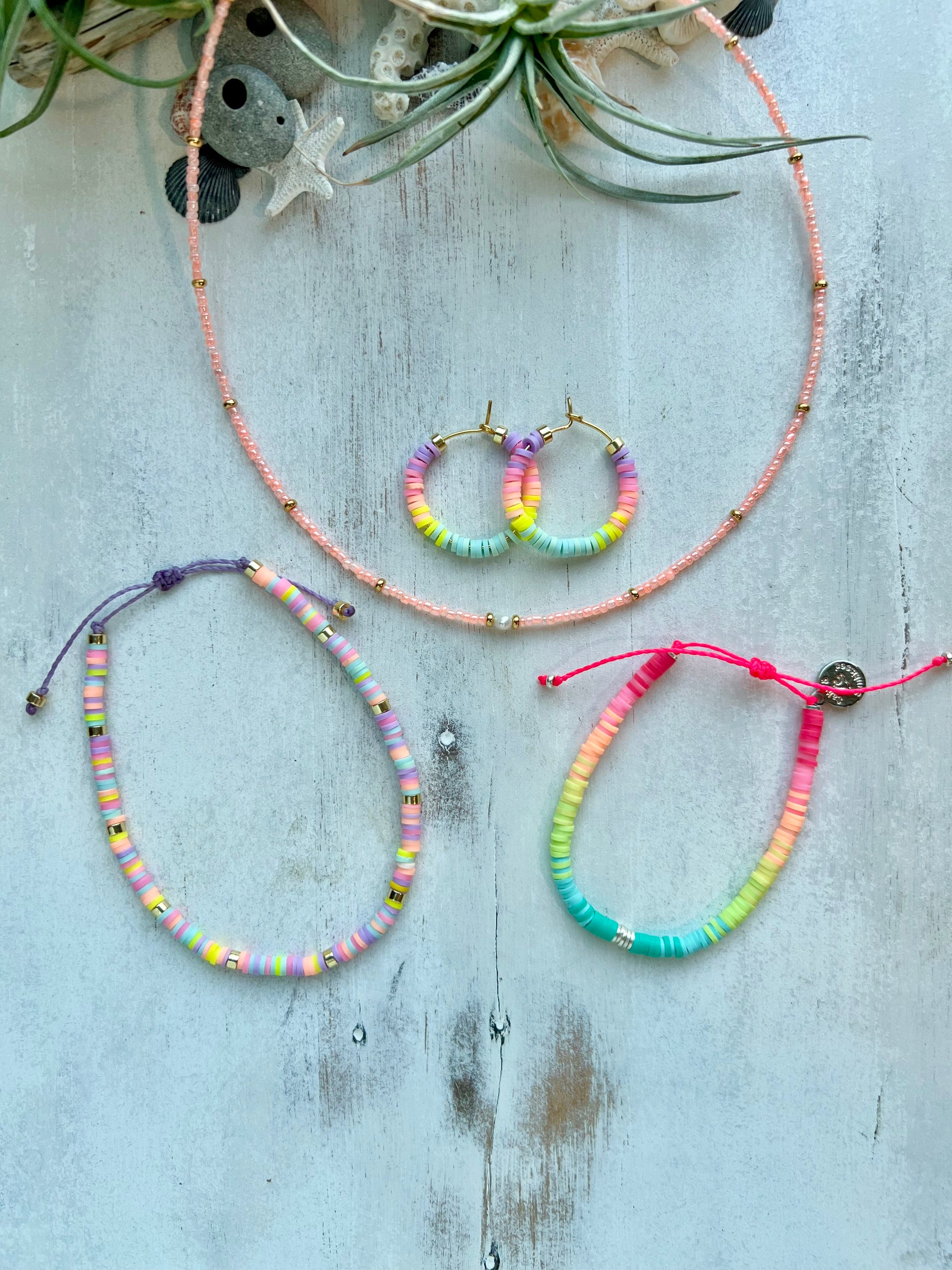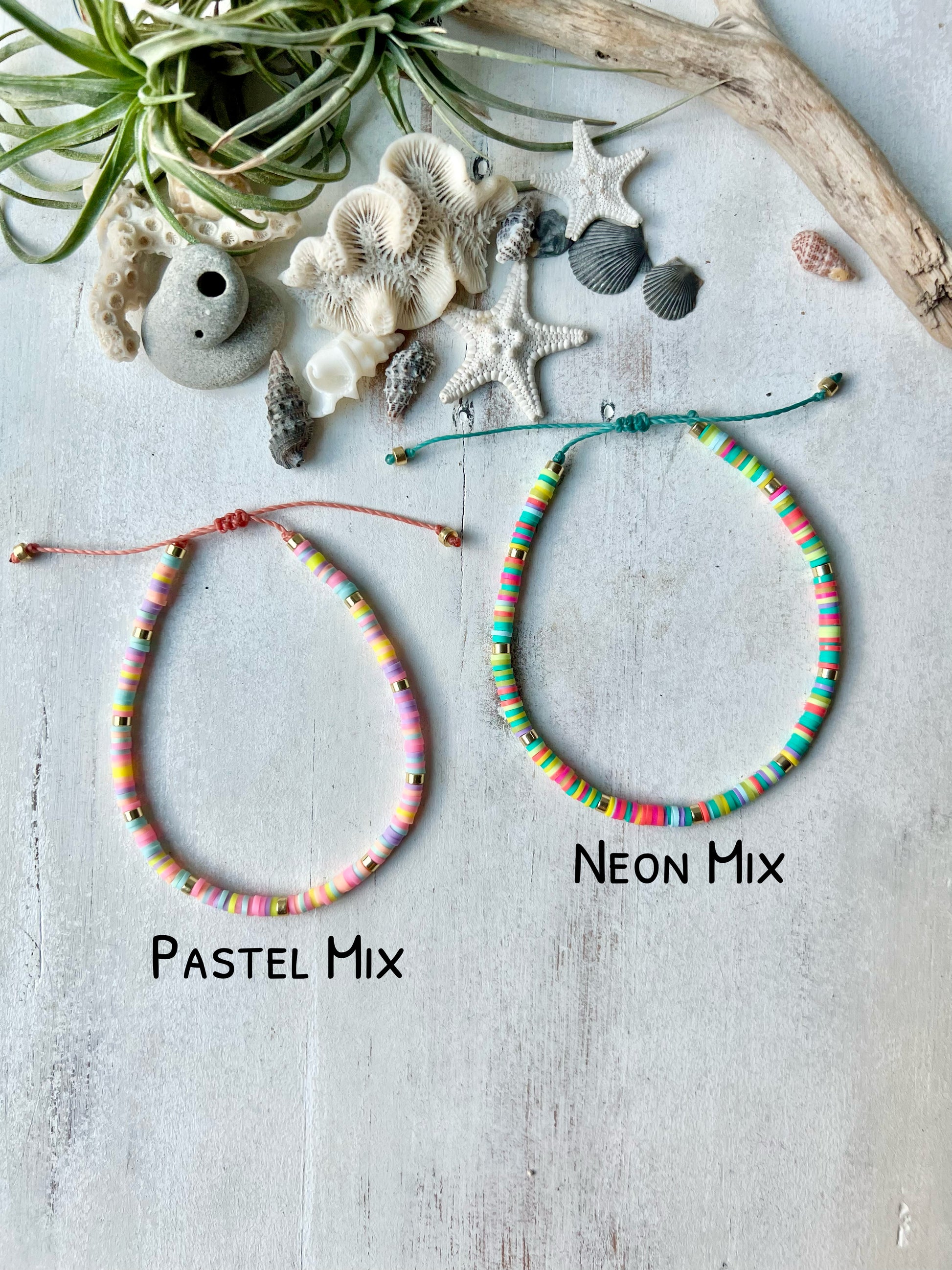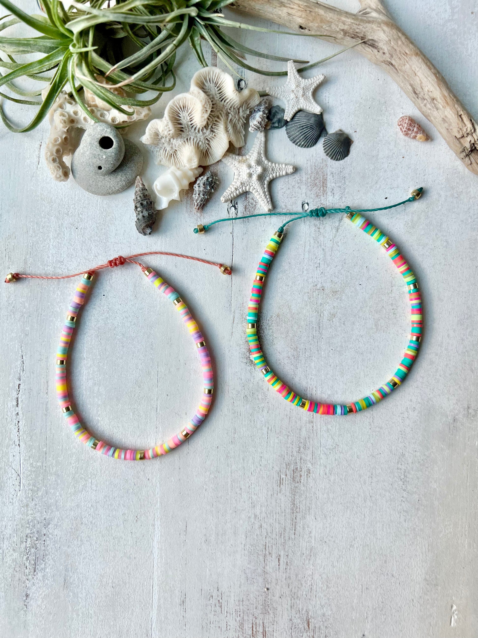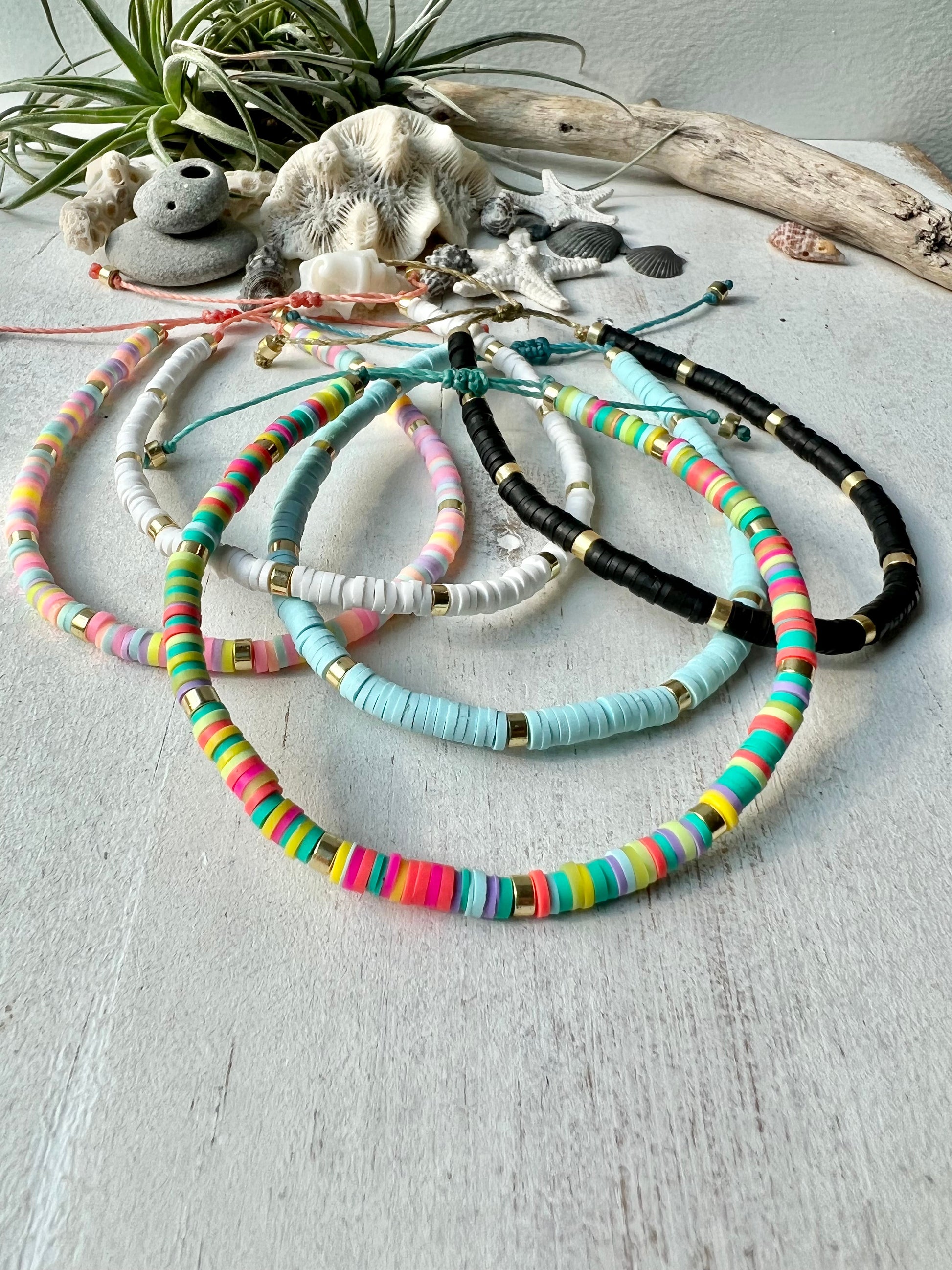 ~ These trendy boho anklets are made using 100% waxed polyester string and super soft polymer clay heishi discs, in your choice of colors!