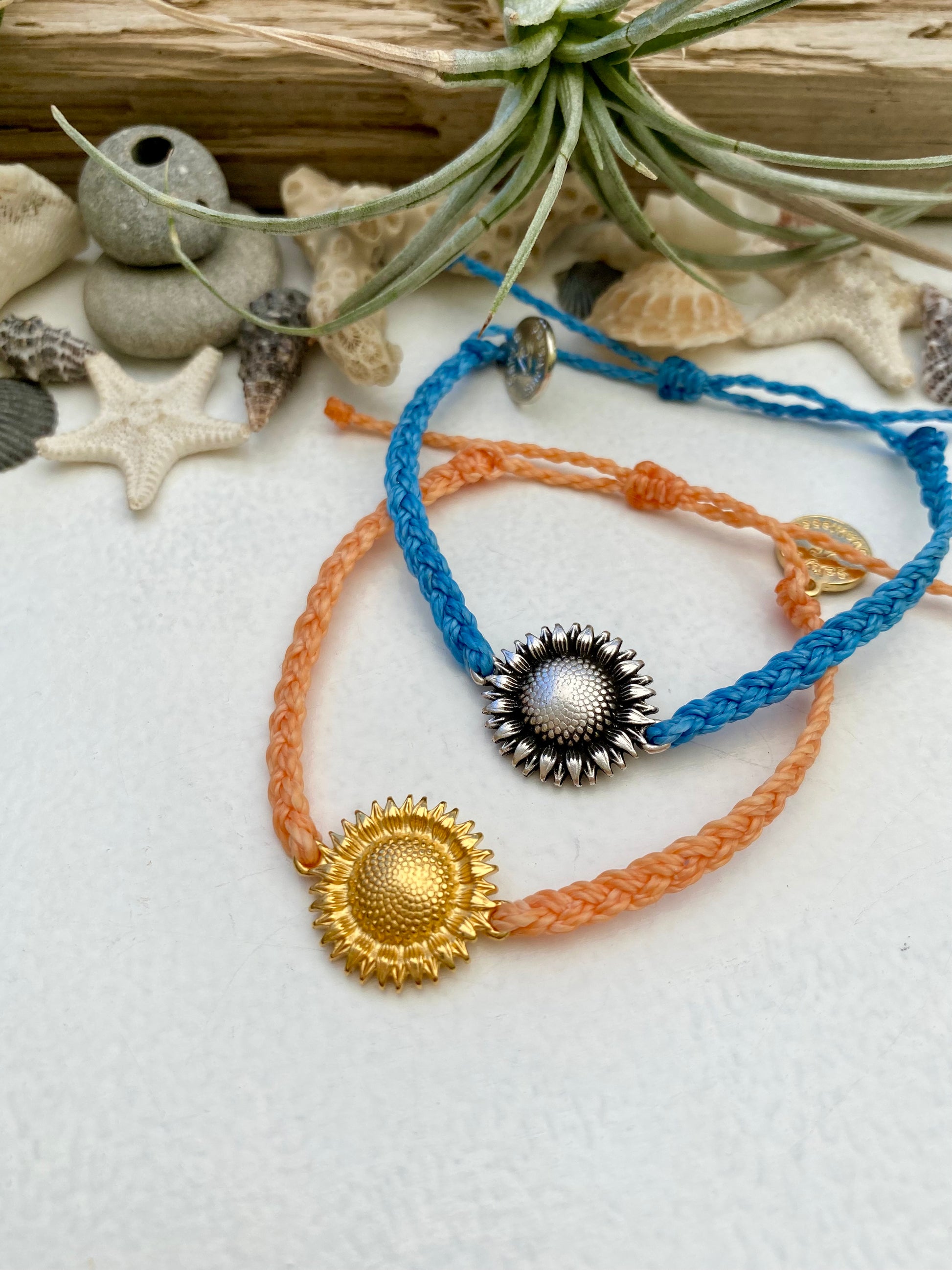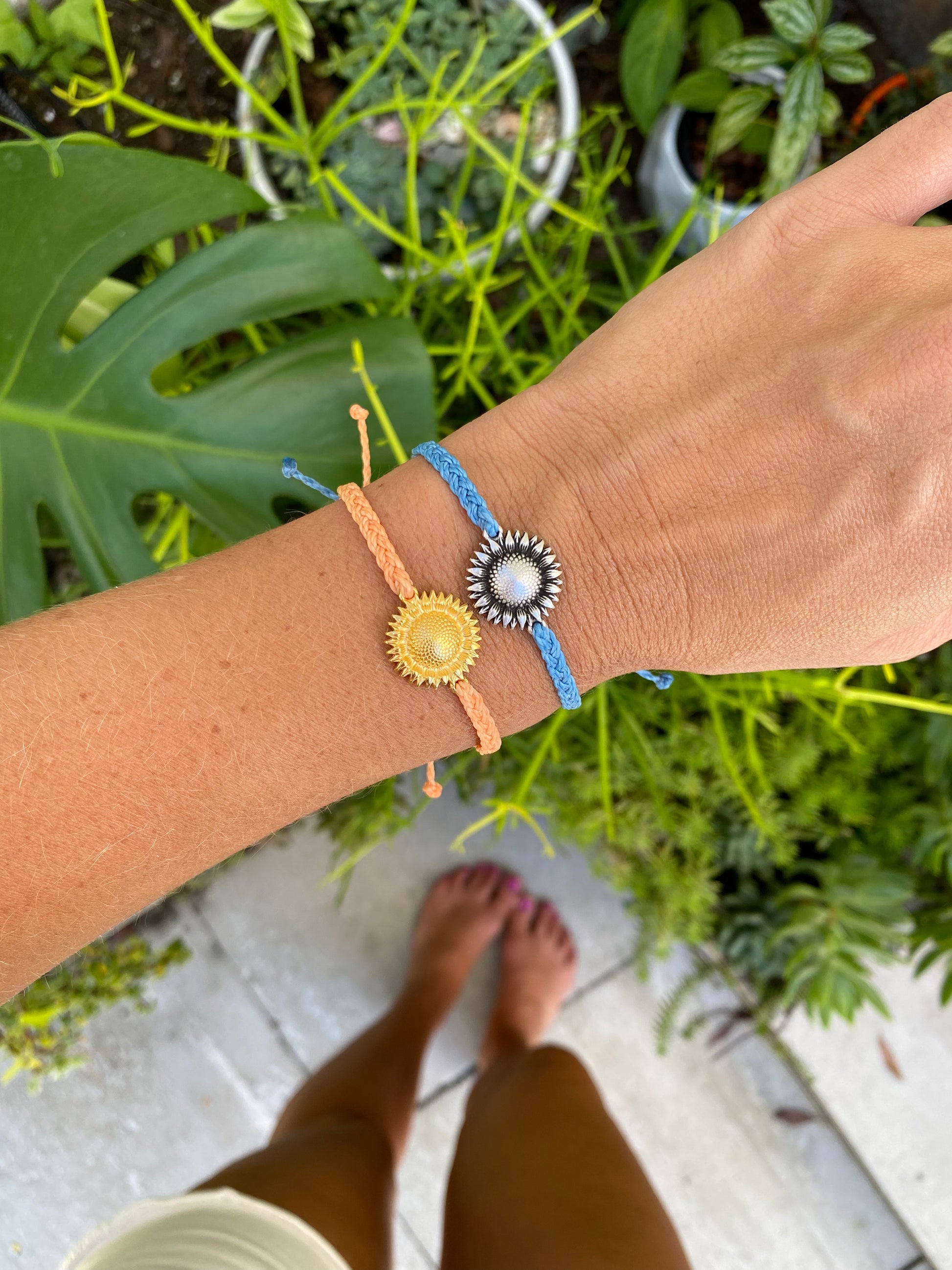 Waxed cord Sunflower bracelet