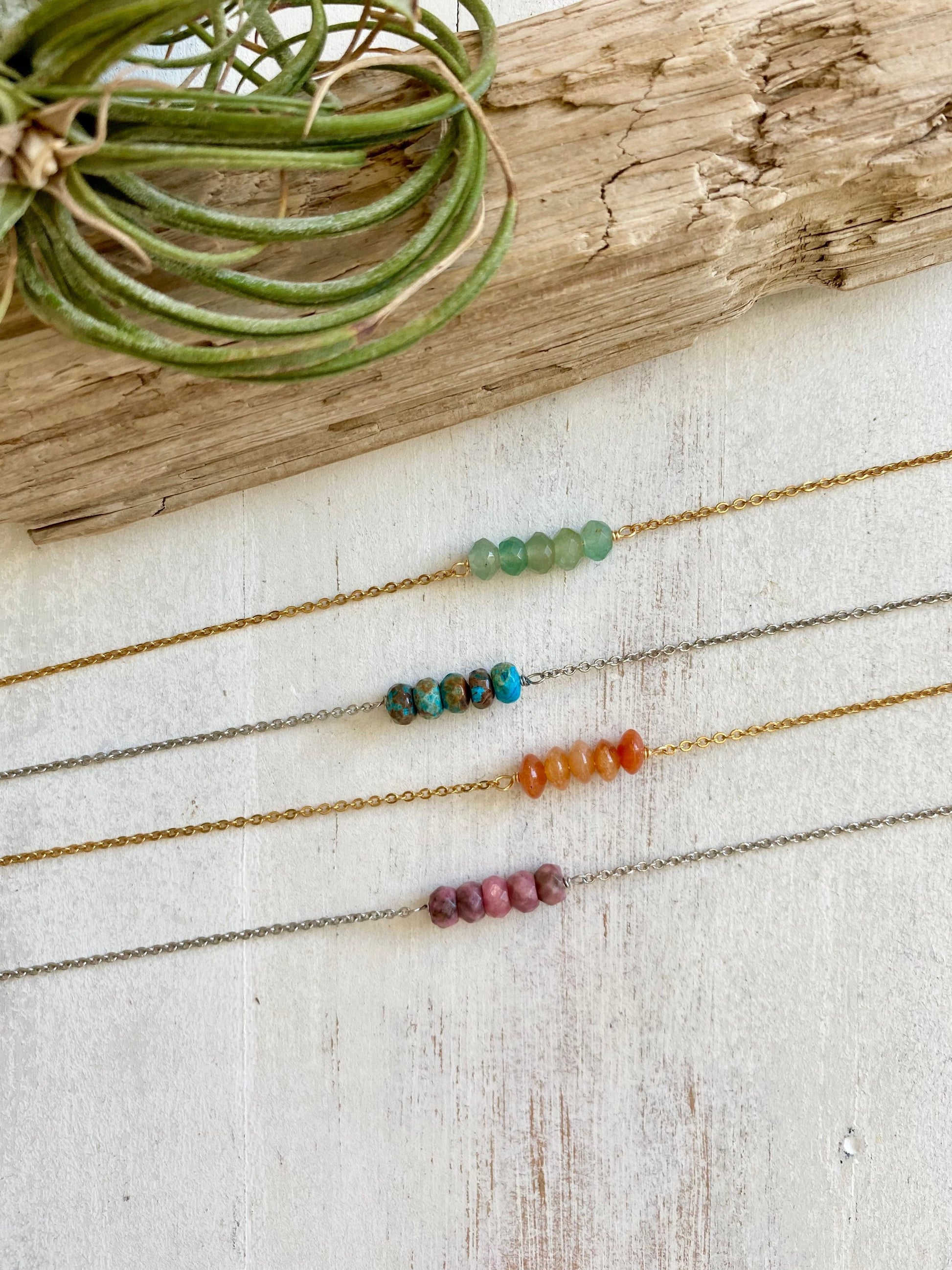 ~ These gemstone bar necklaces are delicately wire wrapped with your choice of wire and chain!