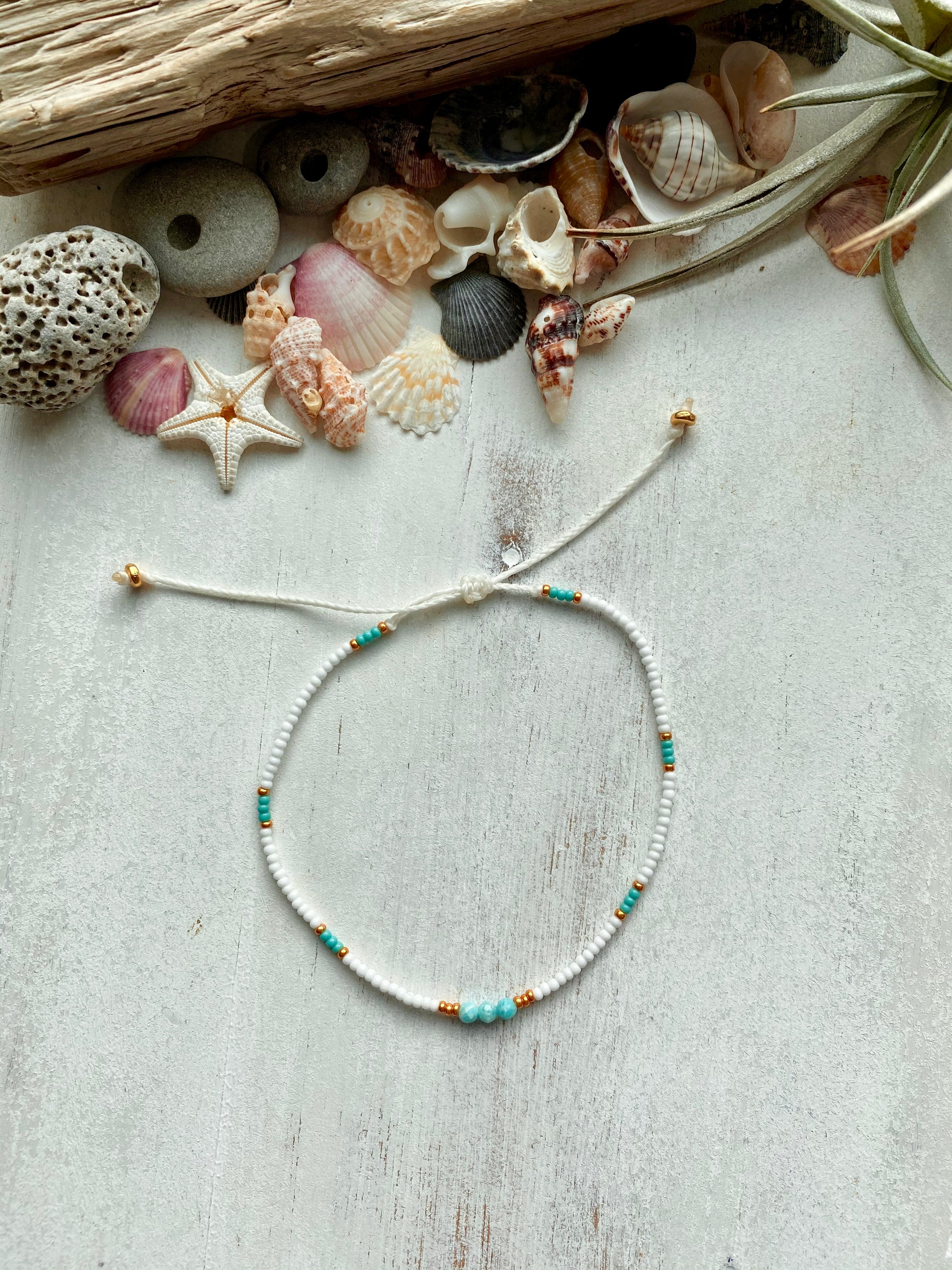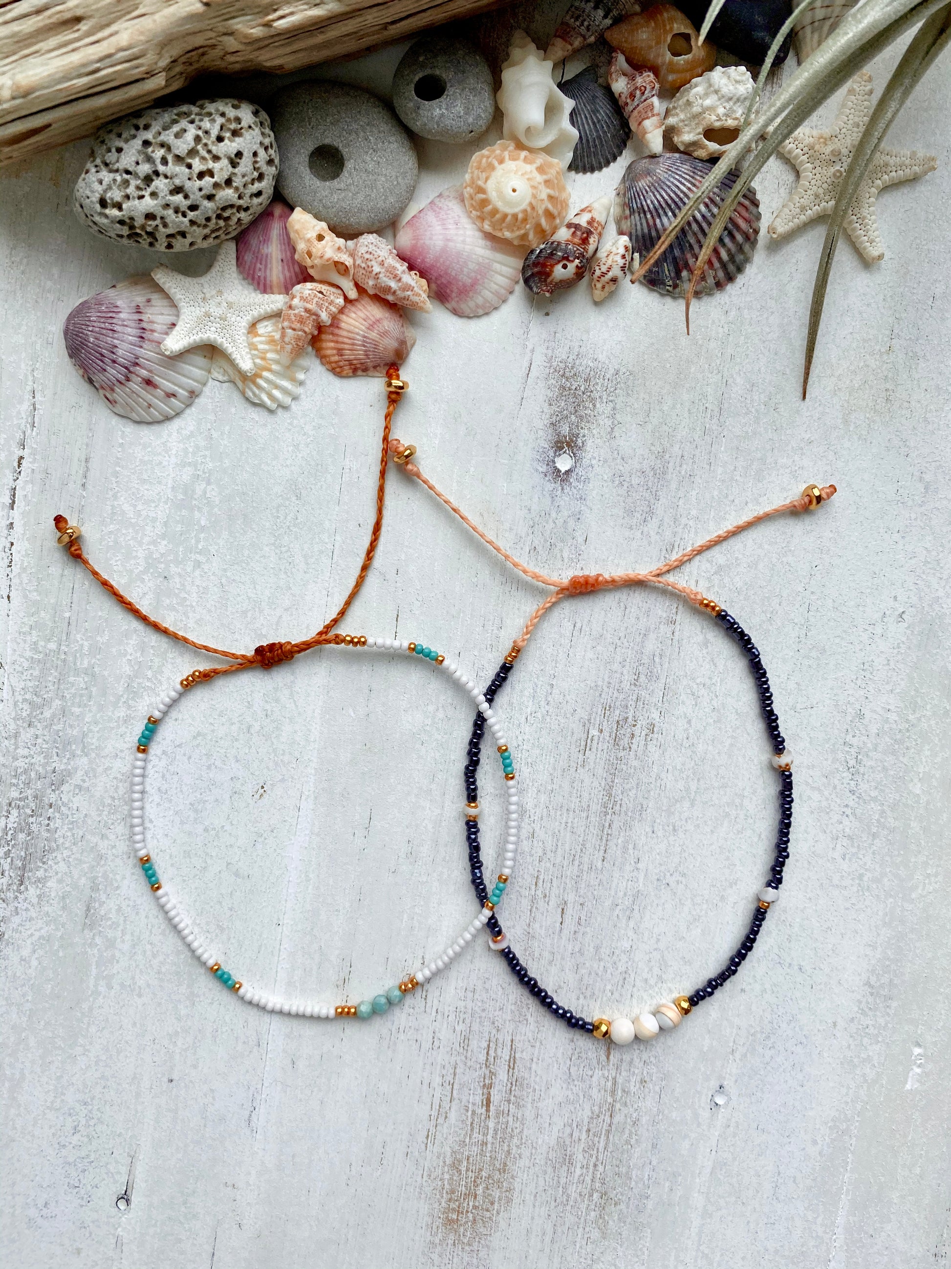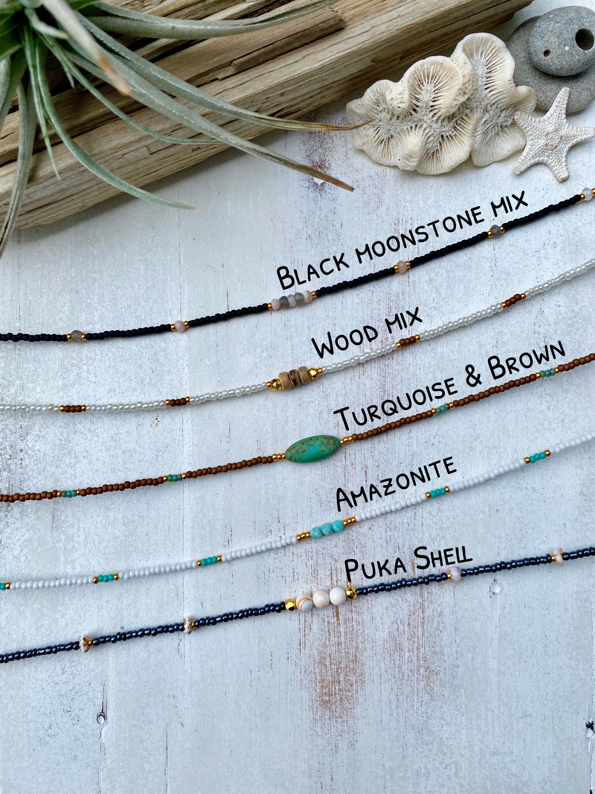 ~ These trendy boho anklets are made using 100% waxed polyester string, a variety of gemstone options and delicate Japanese seed beads in your choice of colors!