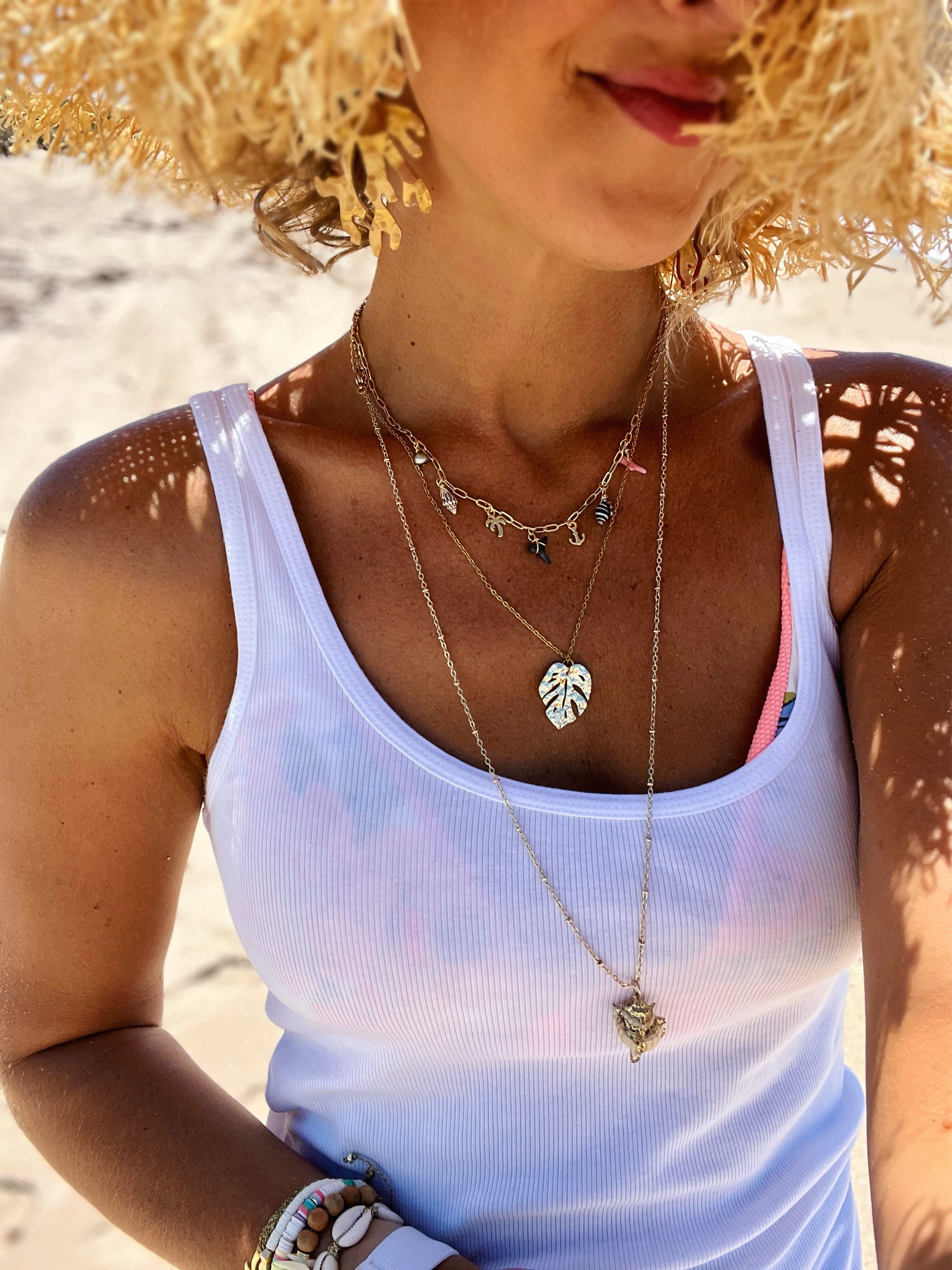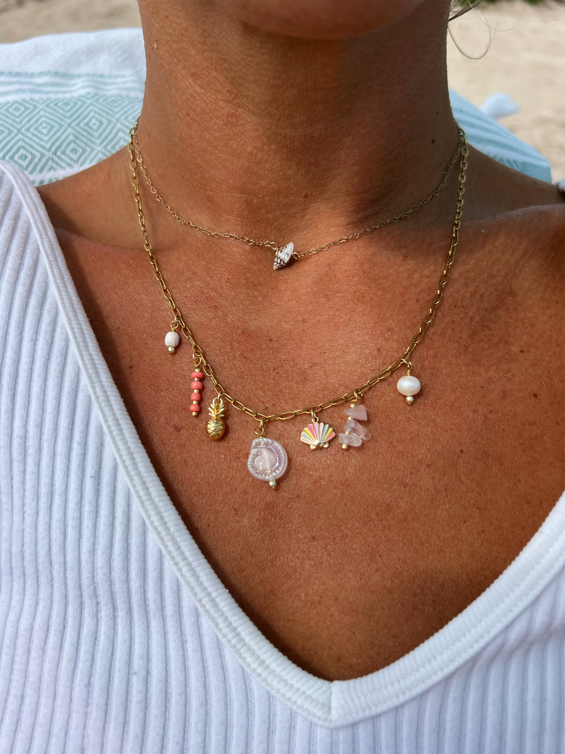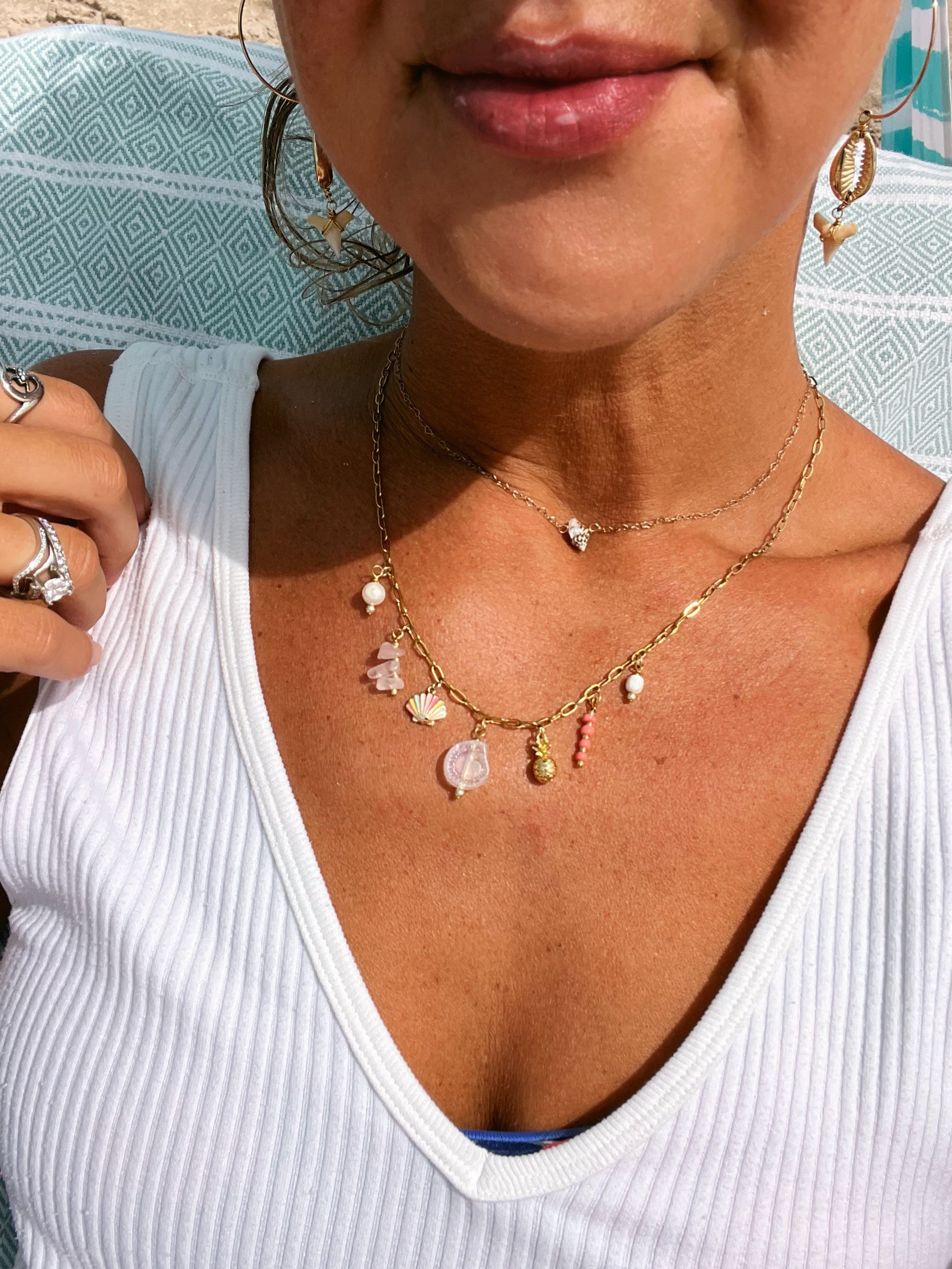 Unleash your creativity with our Treasures from the Sea Necklace! Customize your charm necklace with shells, pearls, shark teeth, and gemstones. Perfect for summer, beachy, and tropical vibes. Available in gold or silver stainless steel on a trendy paperclip chain. Choose your length and chain color for a customizable, mermaid-approved accessory.