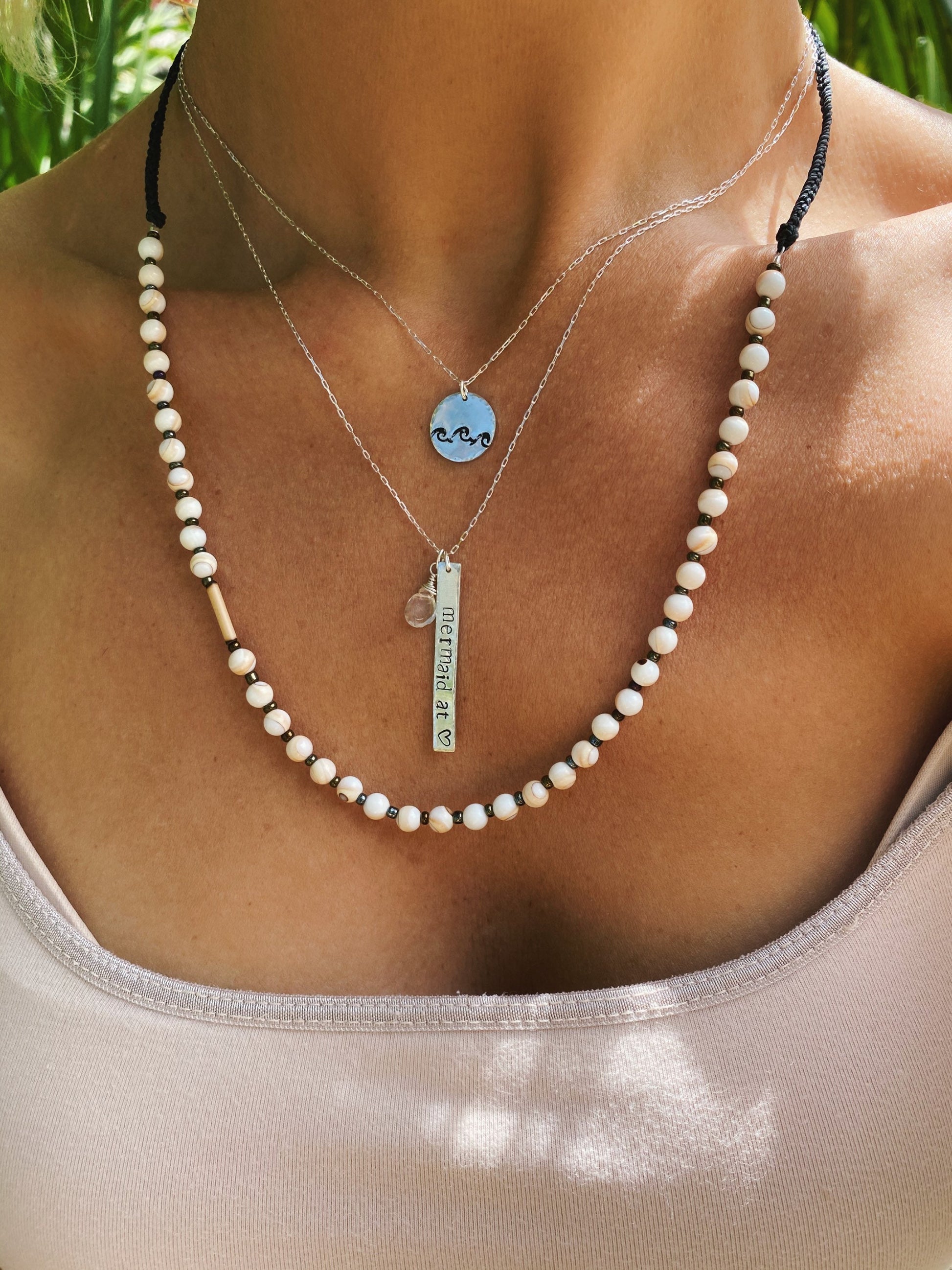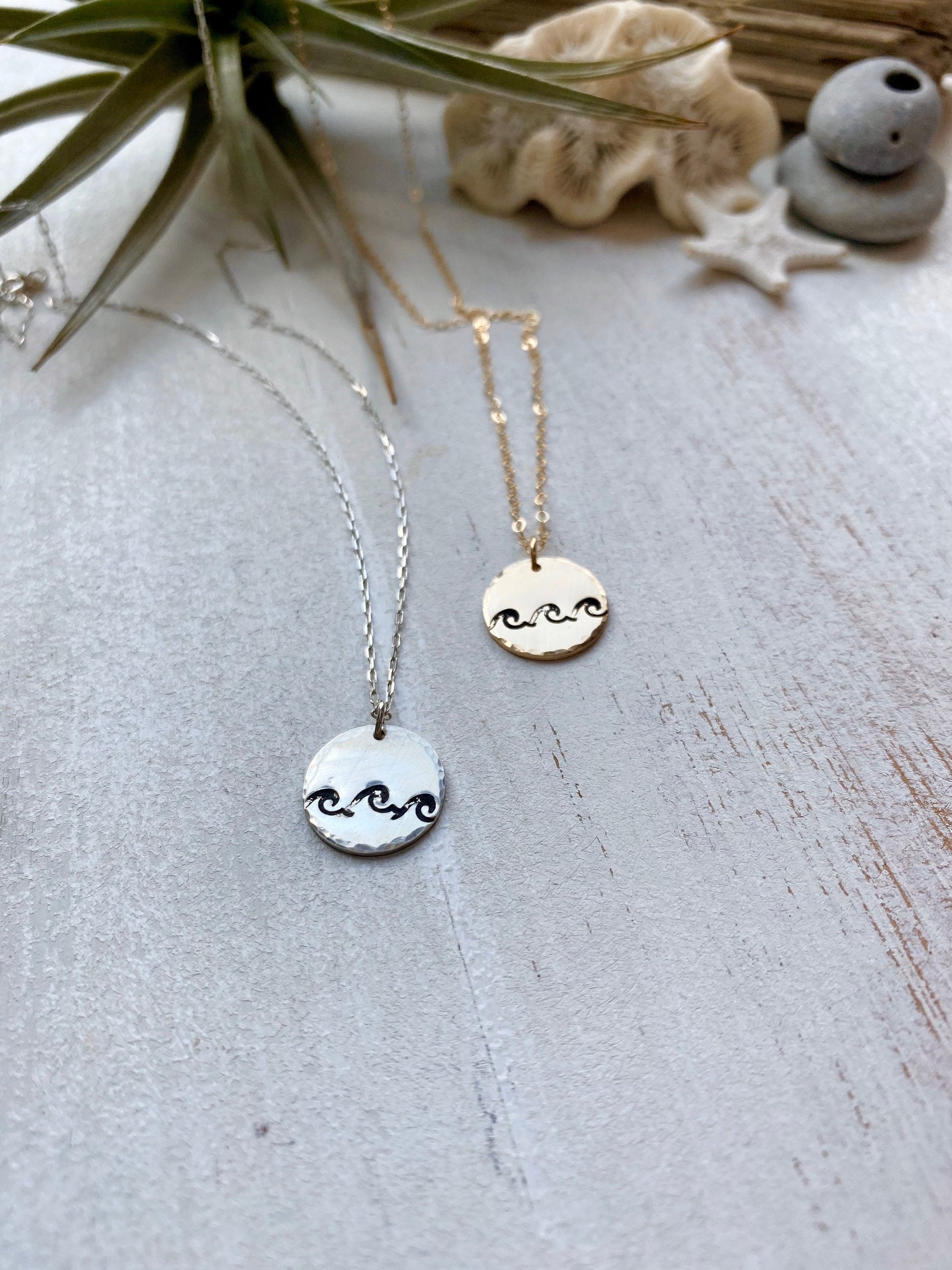 ~For all you ocean & beach lovers! This necklace features a triple wave design. Each wave impression is hand stamped by me in my studio. Variations in stamping and spacing are normal. (the waves can be black or aqua. Just let me know your preference in the notes to seller box at checkout)