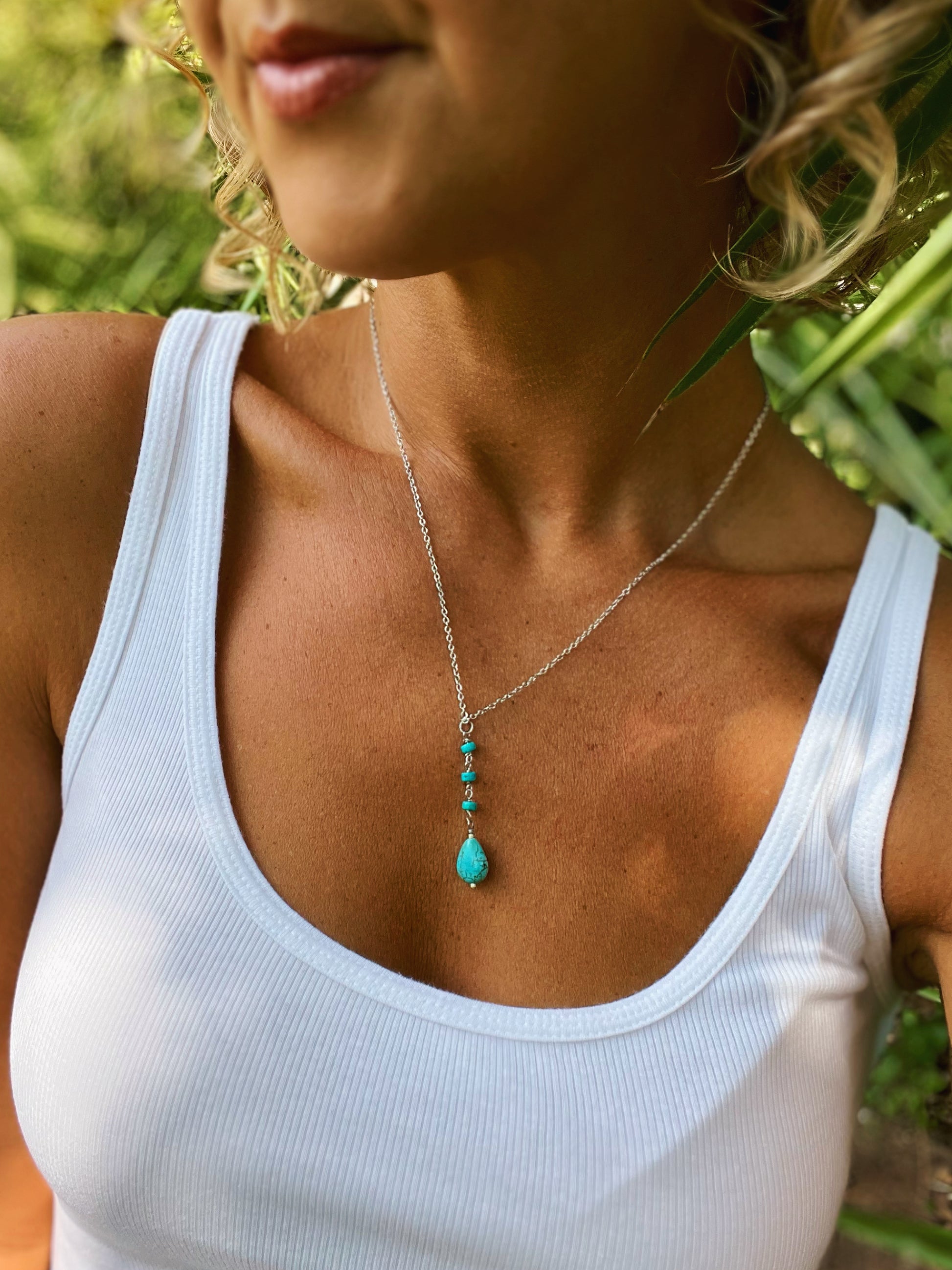 Turquoise Teardrop Lariat Necklace