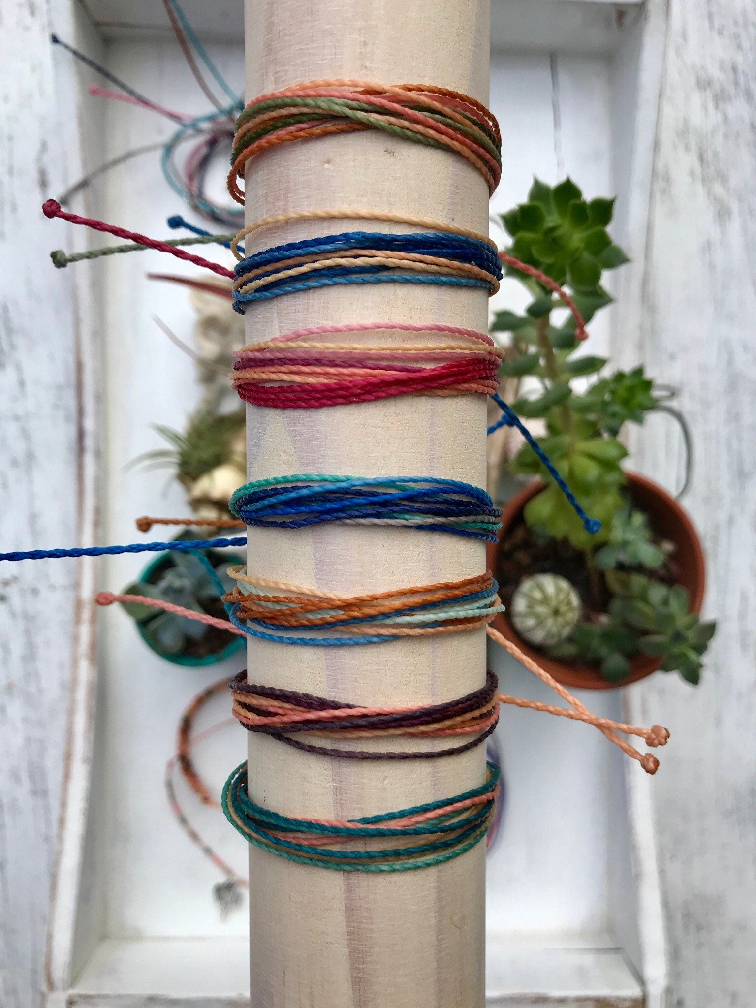 - These beachy bracelets are made using 100% waxed polyester string in your choice of colors!